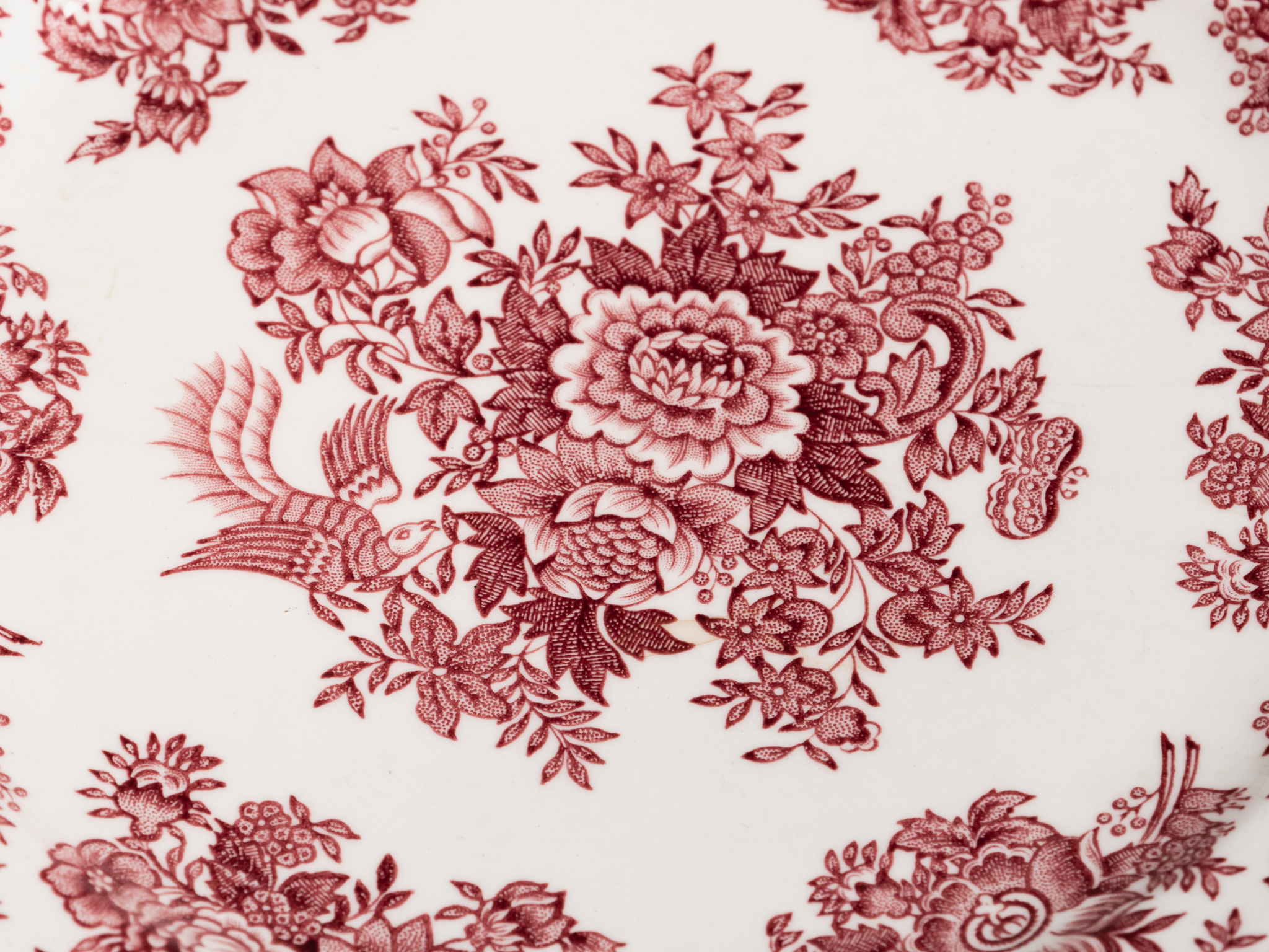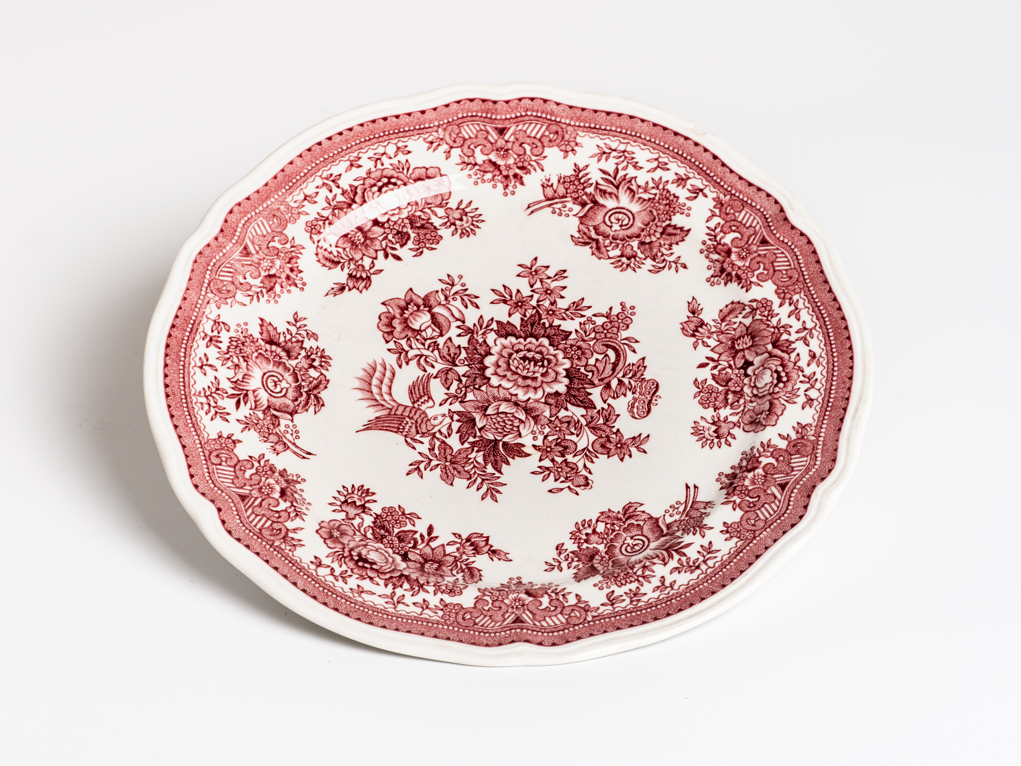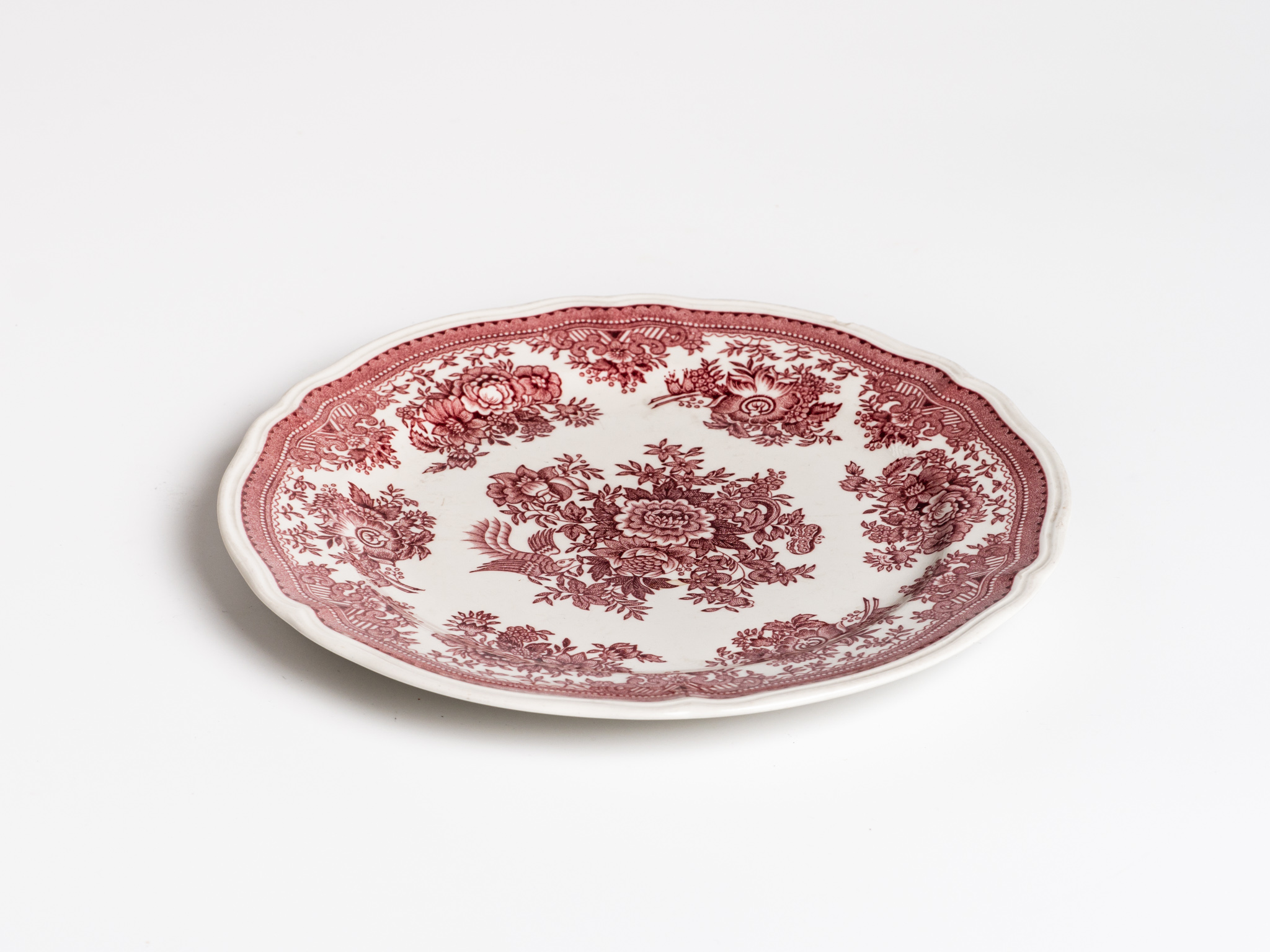 Porcelán, mályvaszínű rózsás motívumokkal díszítve. Védjegy: Fasan Villeroy & Boch. Paraszti háztartásban nem jellemző.