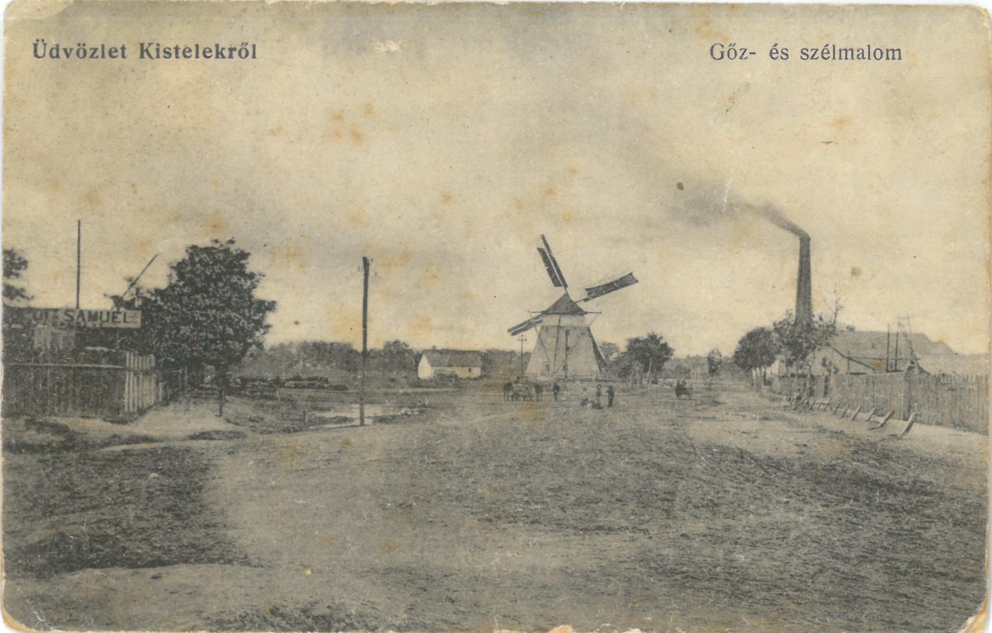 Üdvözlet Kistelekről - Gőz- és szélmalom felirattal, képeslap Meisl Bernát kiadása. A képeslap hátoldalán levelezőlap, postabélyegzővel: Brassó 1916 aug. 20. dátummal. Címzett Auslander László, 1 éves önkéntes, Brassó