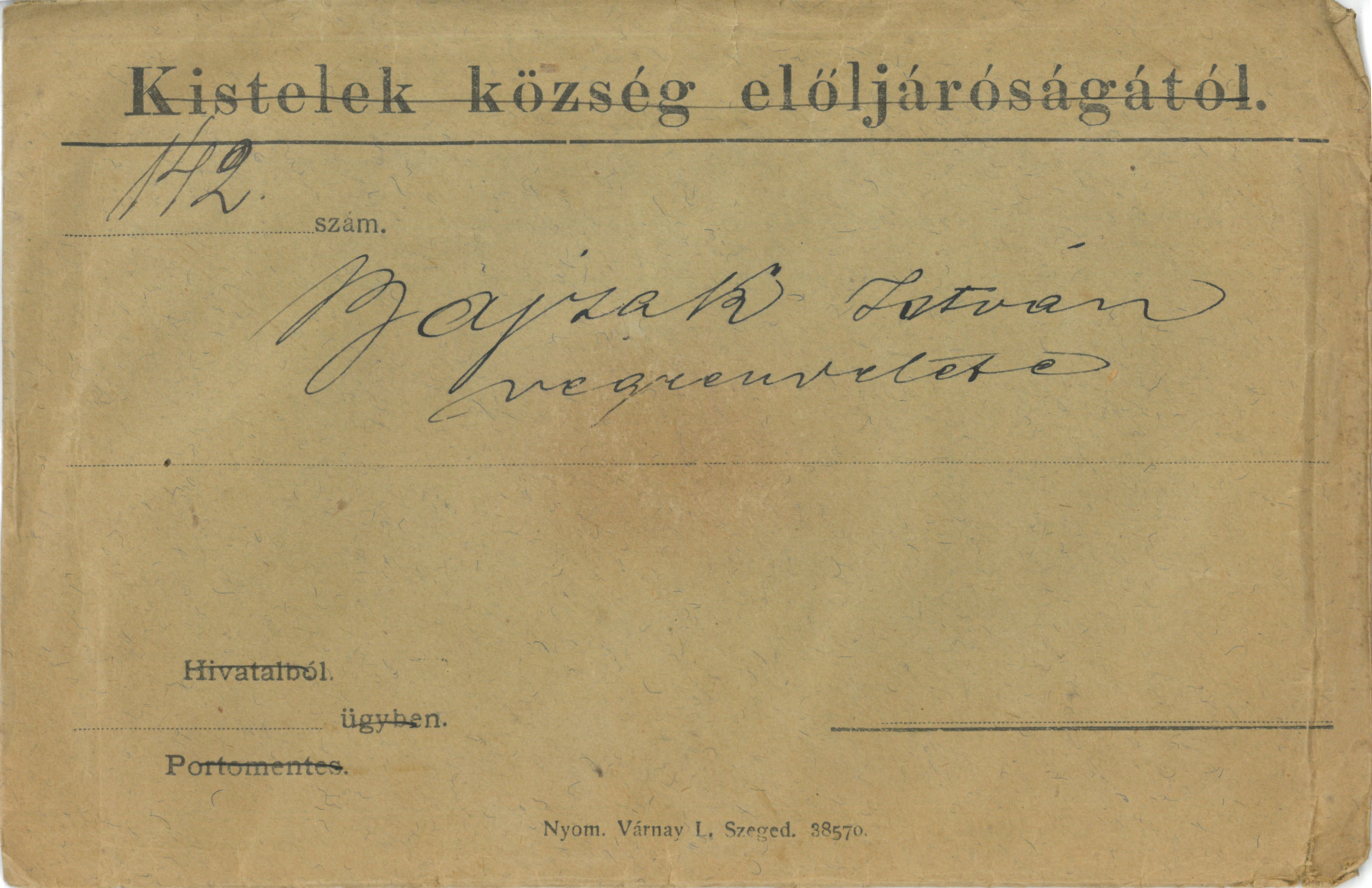| Keletkezés helye/kiadás helye: | Kistelek |