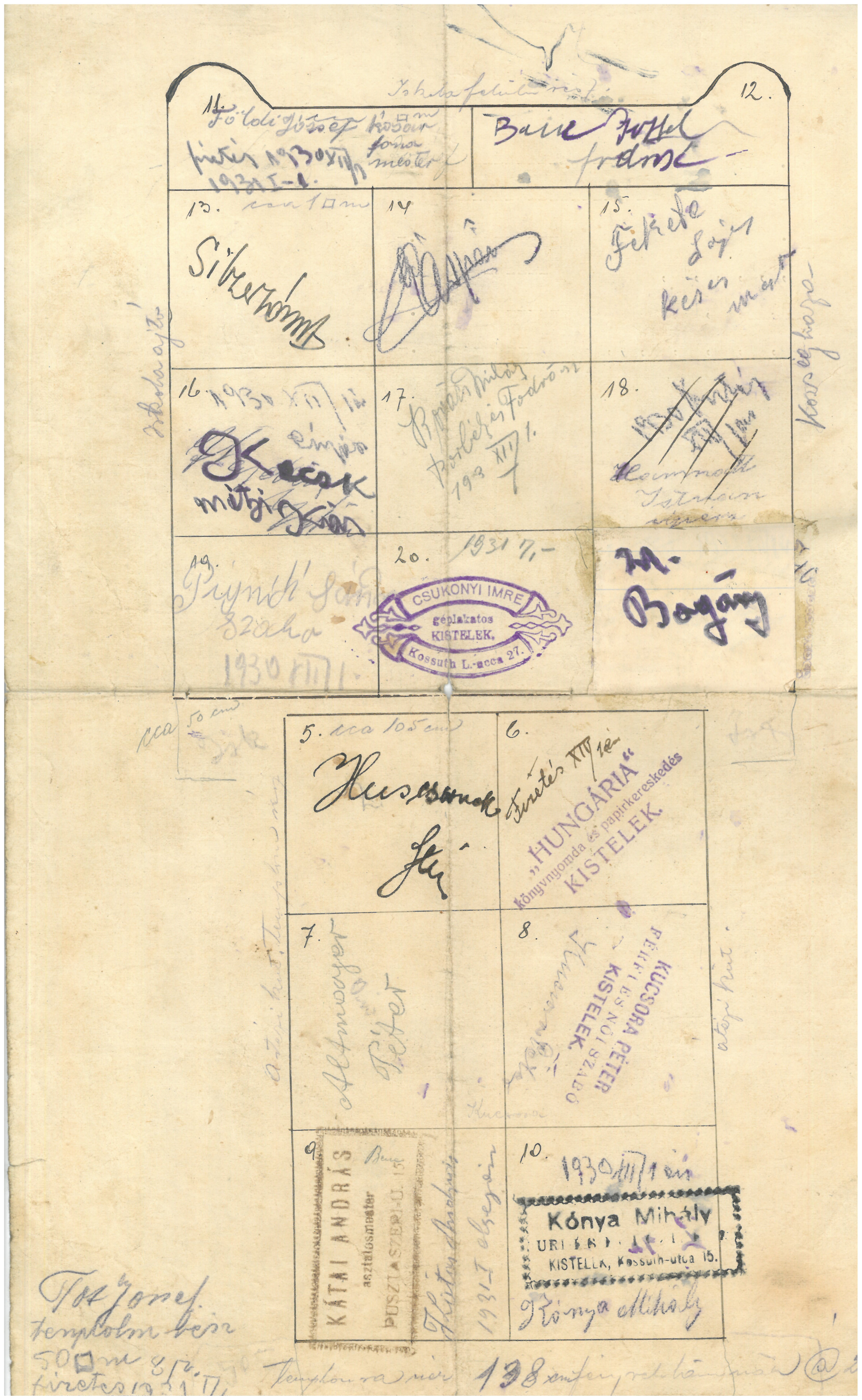 Helykiosztás a korabeli iparosok nevével, feltehetően a főtéren tartott heti piacról.