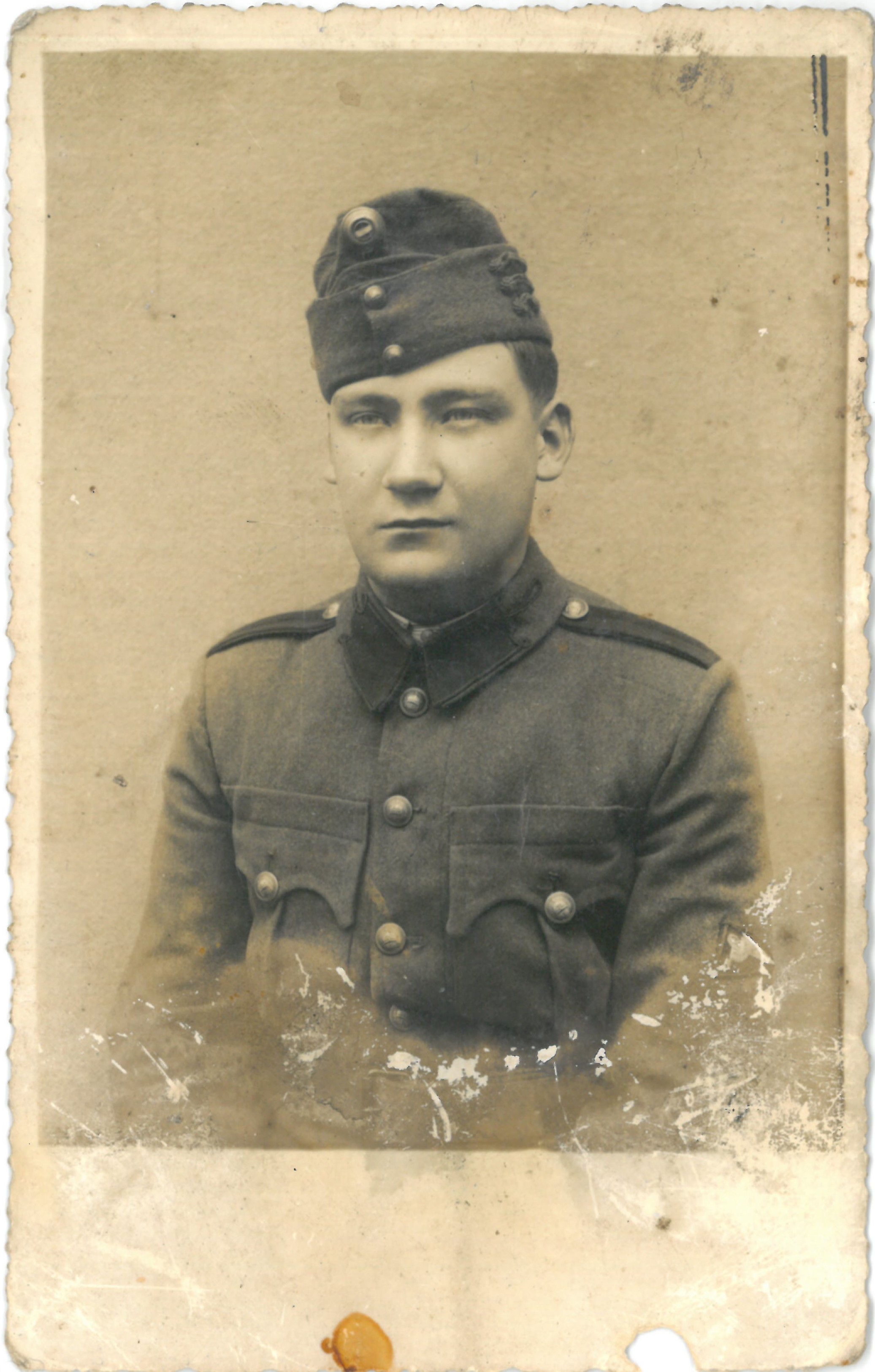 II. világháborús katonaportré. Fotó hátoldalán Buknicz István. Feltehetően csengelei. A II. világháborúban vagy szovjet hadifogságban ismeretlen körülmények között halt meg.