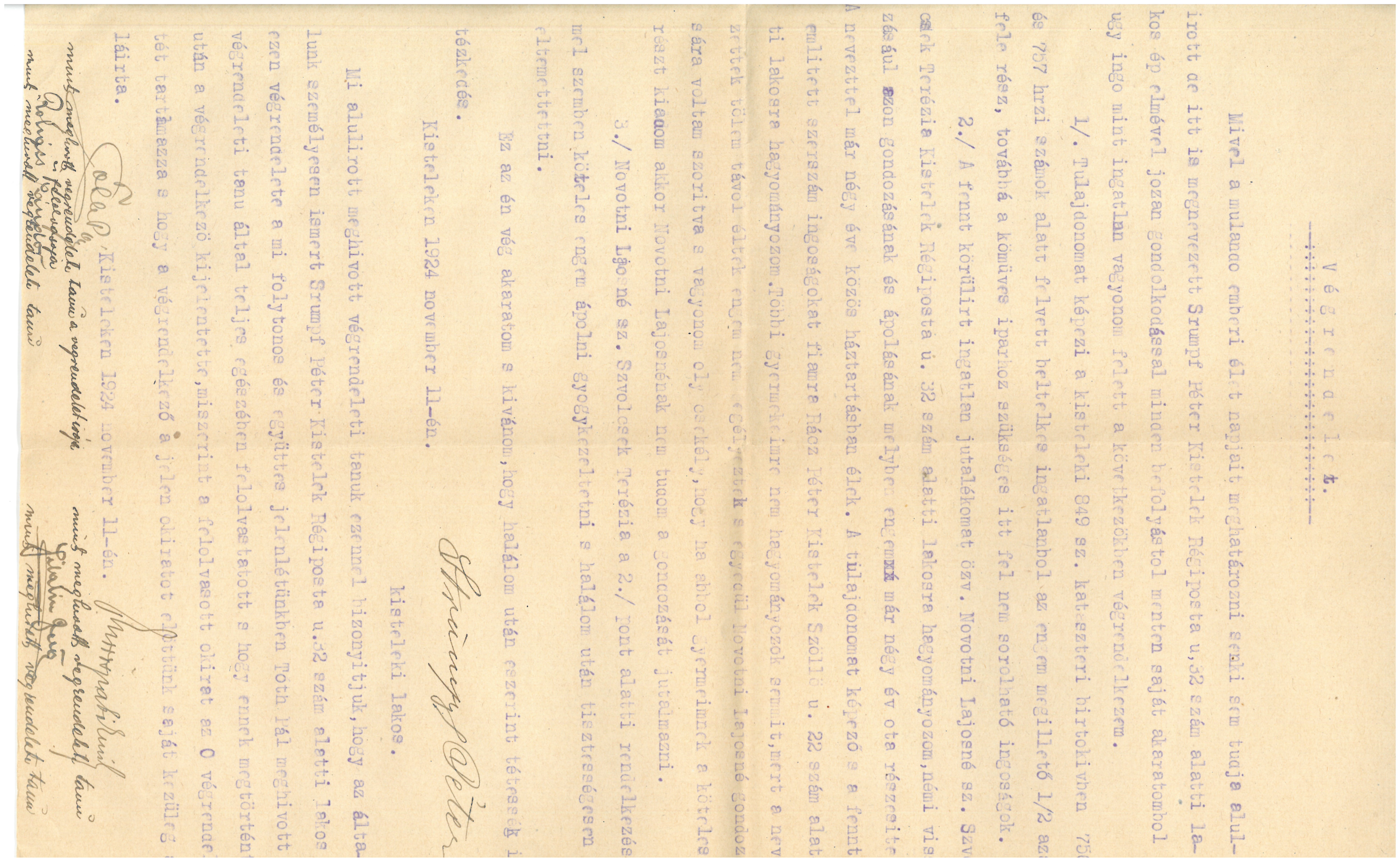 Strumpf Péter végrendelete, 1924. november 11. keltezéssel.