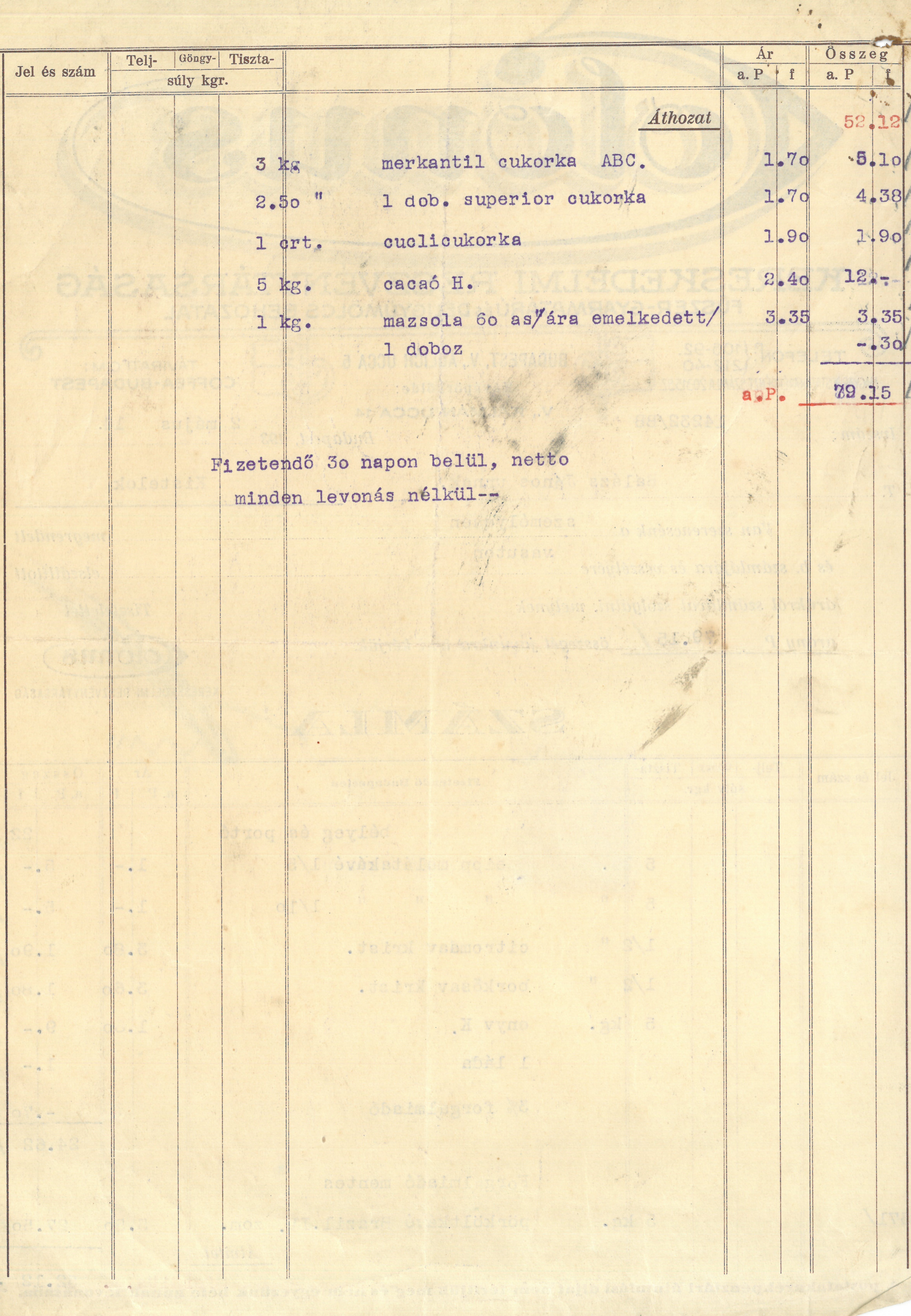 Colonus Kereskedelmi Részvénytársaság számlája. Balázs János vegyeskereskedést üzemeltetett Kisteleken az 1930-as évek elején. Iratanyagában több beszállítói számla található, korabeli gyártóktól és forgalmazóktól.