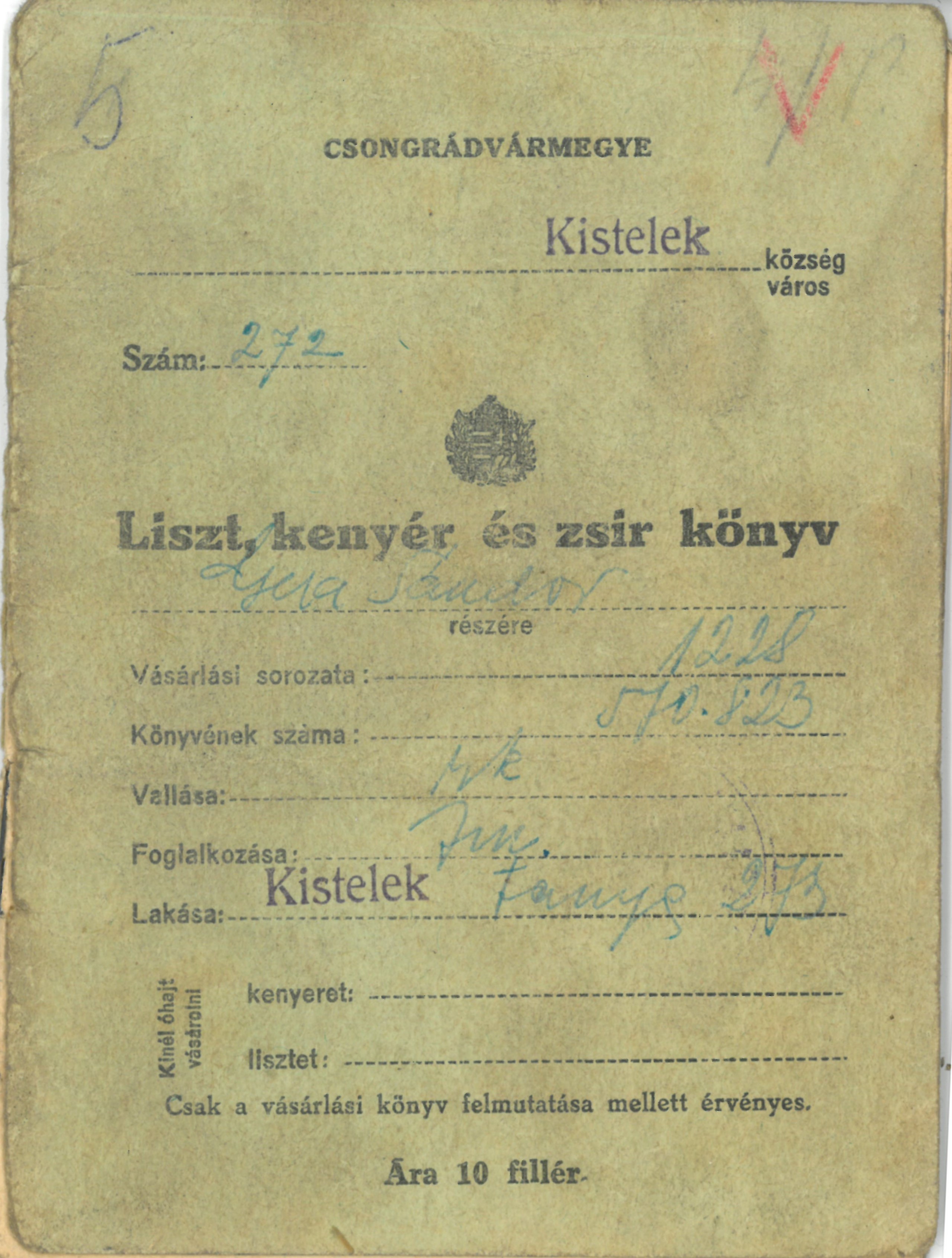 | Szerző/kiállító | Kistelek Község Közélelmezési Hivatala |