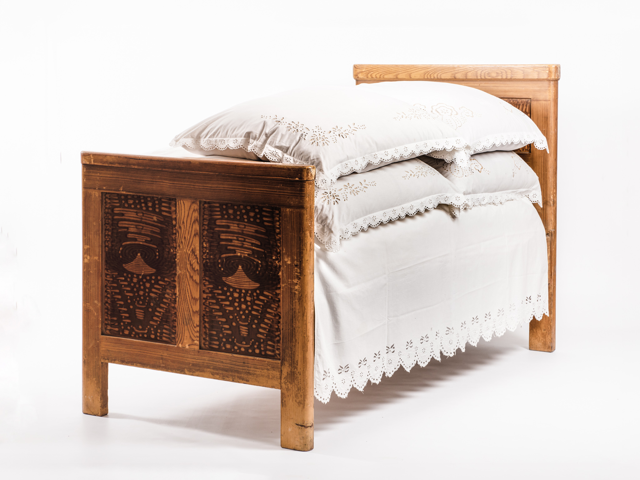 Fából készült, fej- és lábtámlás flóderozott, lakkozott ágy szalmazsákkal. A tisztaszoba bútordarabja a "vetett ágy", mely az asszony kelengyéjével (párnák, dunnák ágyneműhuzattal) volt beágyazva.