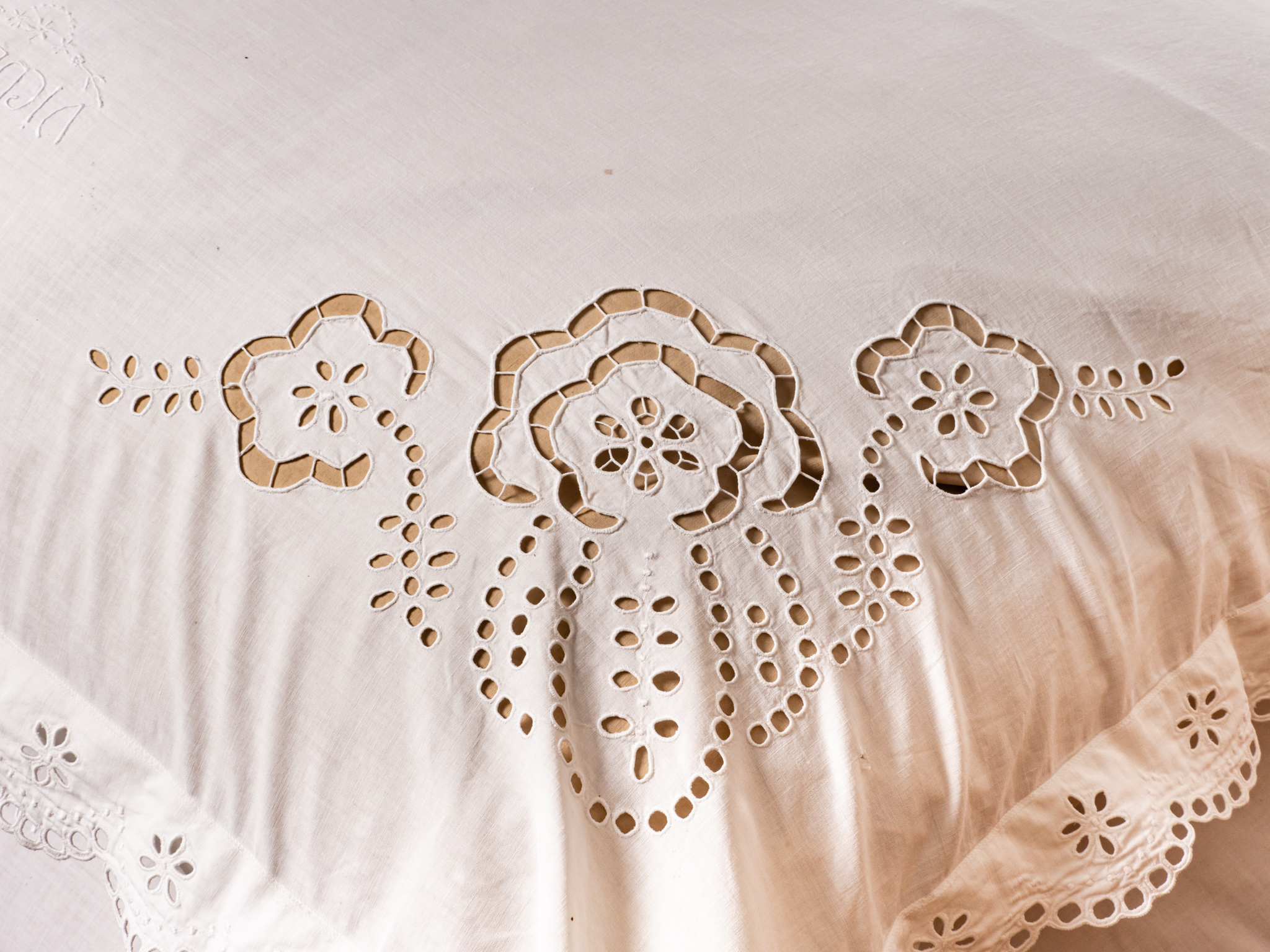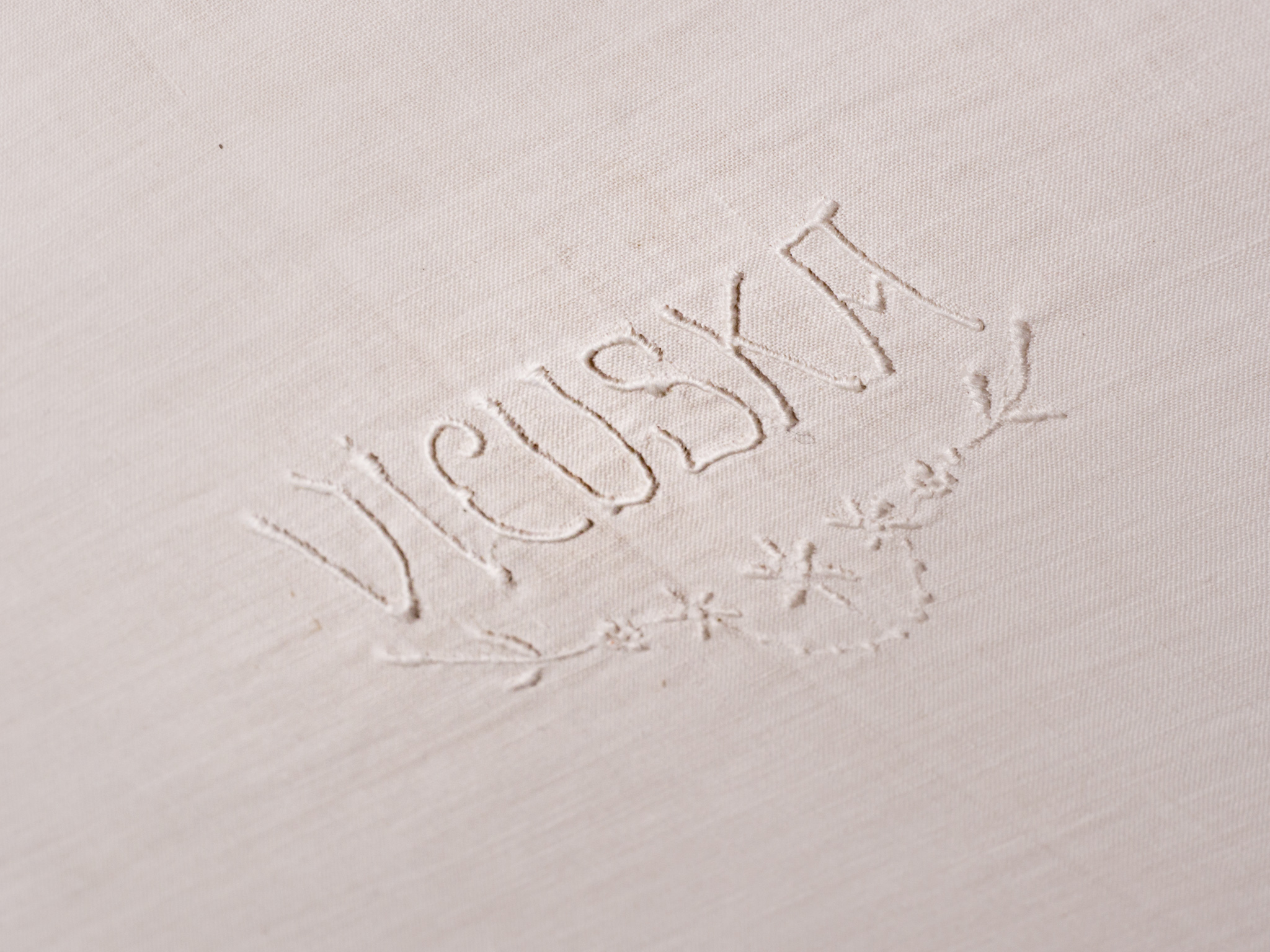 Egy vetett ágyra való ágynemű garnitúra, huzattal. Két dunna, négy párnahuzat, egy terítő. A fehér vászonból készült lyukhímzéssel díszített ágyhuzaton hímzett felirat: "VICUSKA" , a hozomány tulajdonosának neve. Házasságkötéskor a lányok hozományként ágyneműt kaptak, mely sokszor saját készítésű volt. A vetett ágy a tisztaszoba berendezési darabja volt.