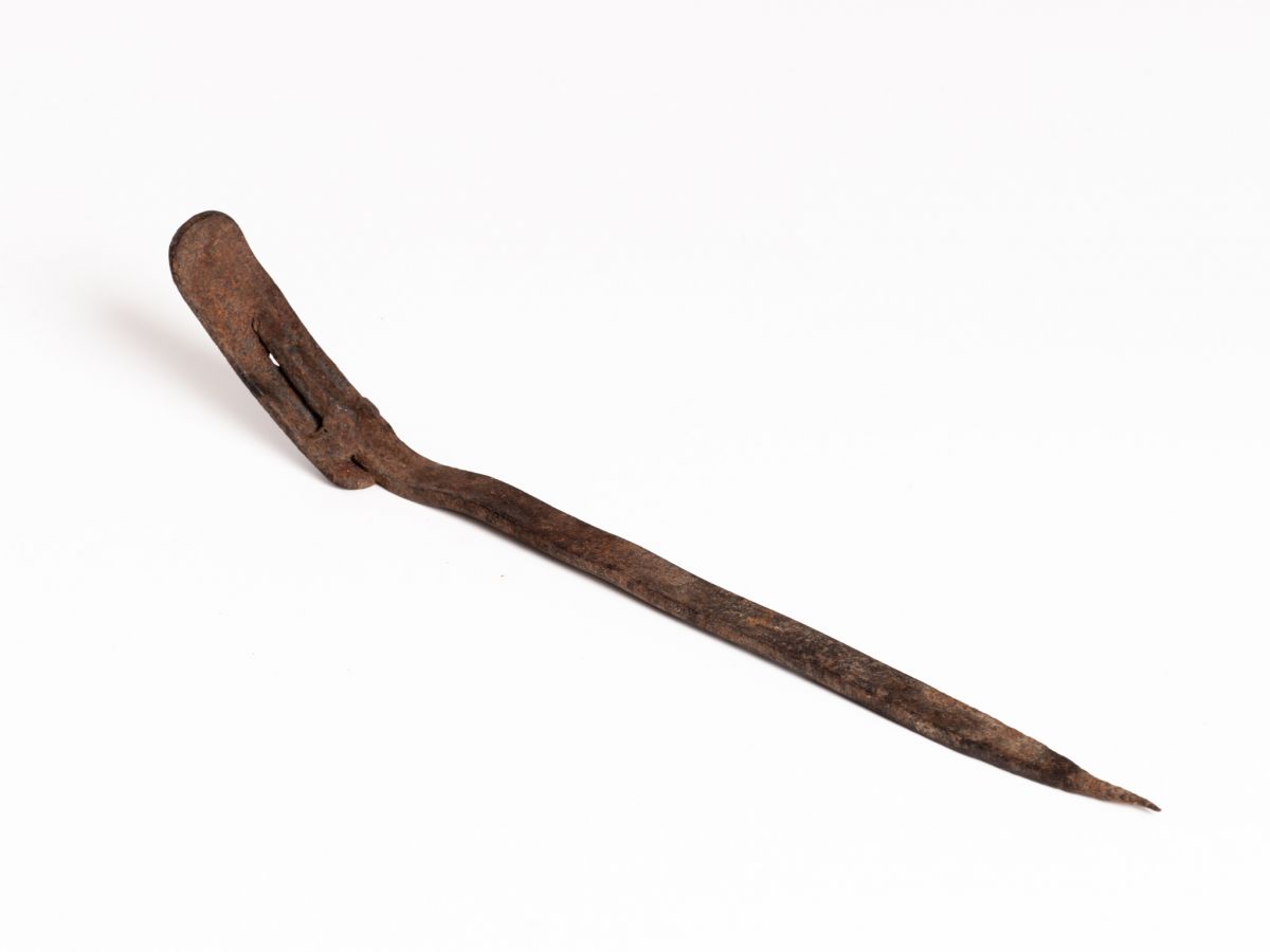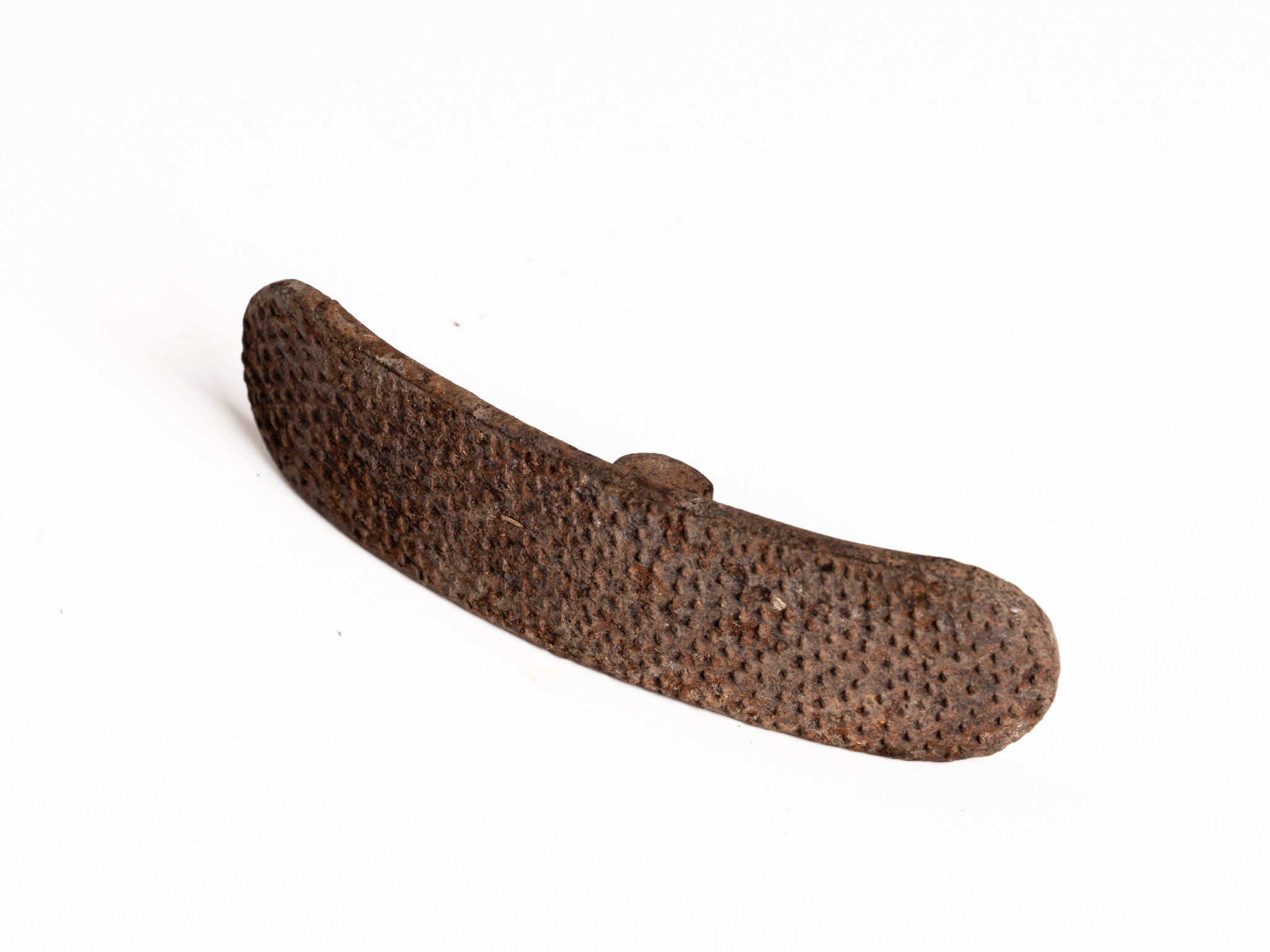 A cipőkészítés során a belső faszög-maradványok eltávolításához használt rövid fejű, hosszú nyelű reszelő. Kónya Mihály hagyatéka.