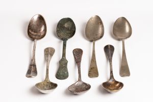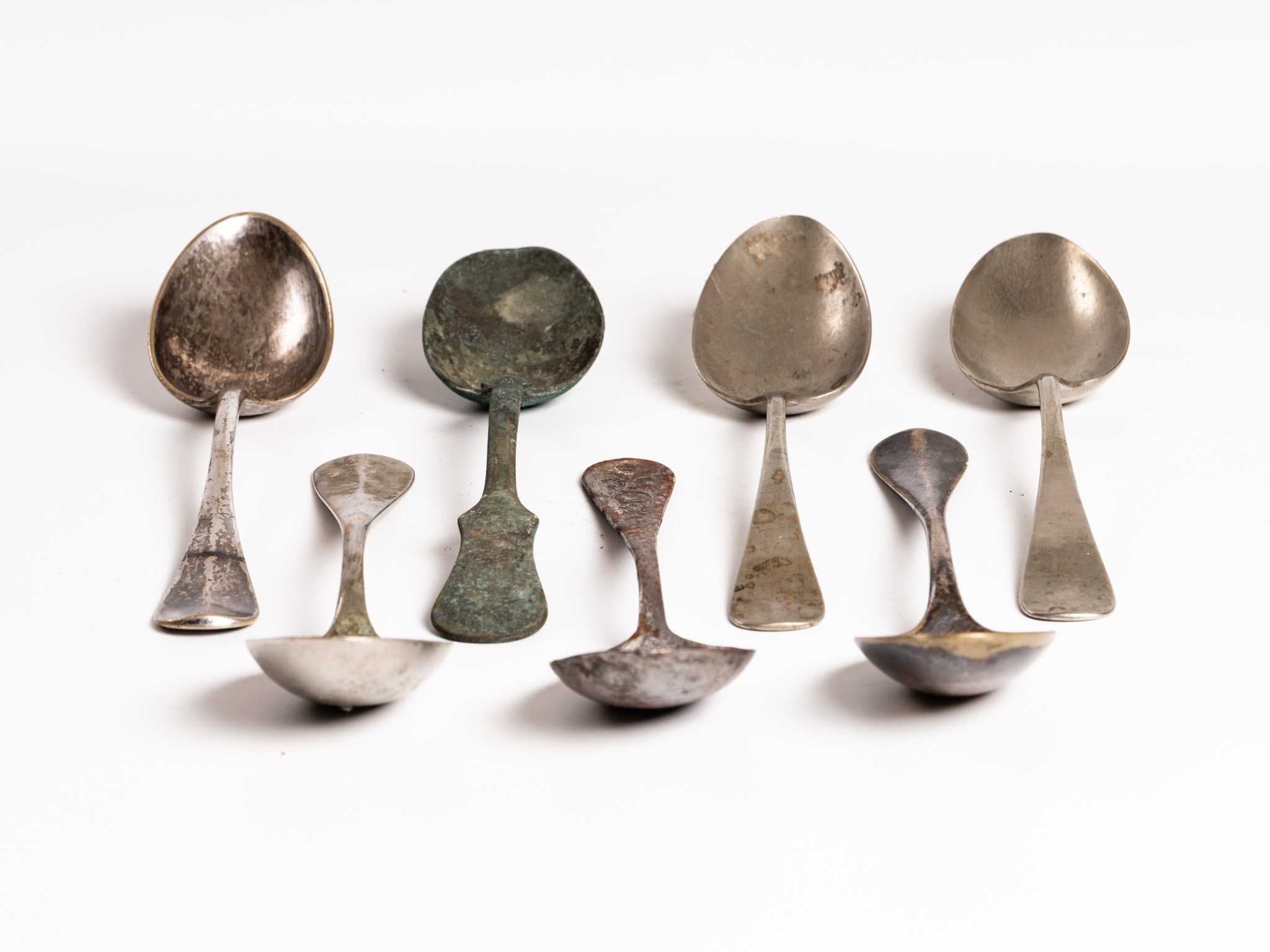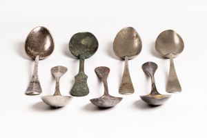 Alpakkából készült evőkanalak. Felirat: KRUPP. Az Osztrák-Magyar Monarcia idején Berndorfban Alfréd Krupp által alapított evőeszközgyár terméke. Az alapakka evőeszközök a 19.században a polgári asztali etikettben terjedtek el. A paraszti konyhán fából készült kanalakat használtak. Az alapakka kanalak megjelenése falusi használatban a két világháború közötti időszakra tehető.