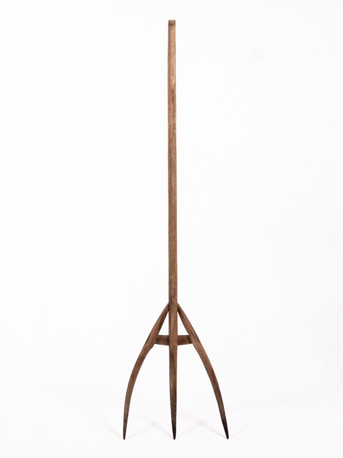 Fából faragott, hasított, csapolt, szögelt háromágú ún. toldott villa puhafából. Típusa szerint: német villa. Ezt használták szénagyűjtéshez és a kötetlen kaszás aratáshoz a 19–20. században.