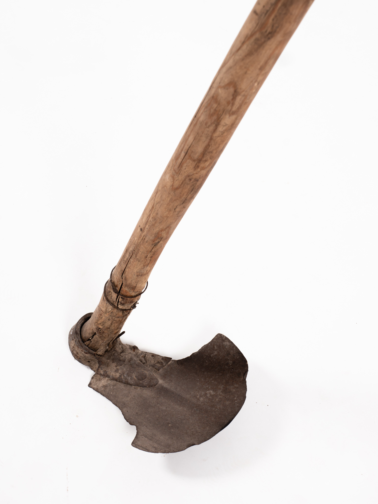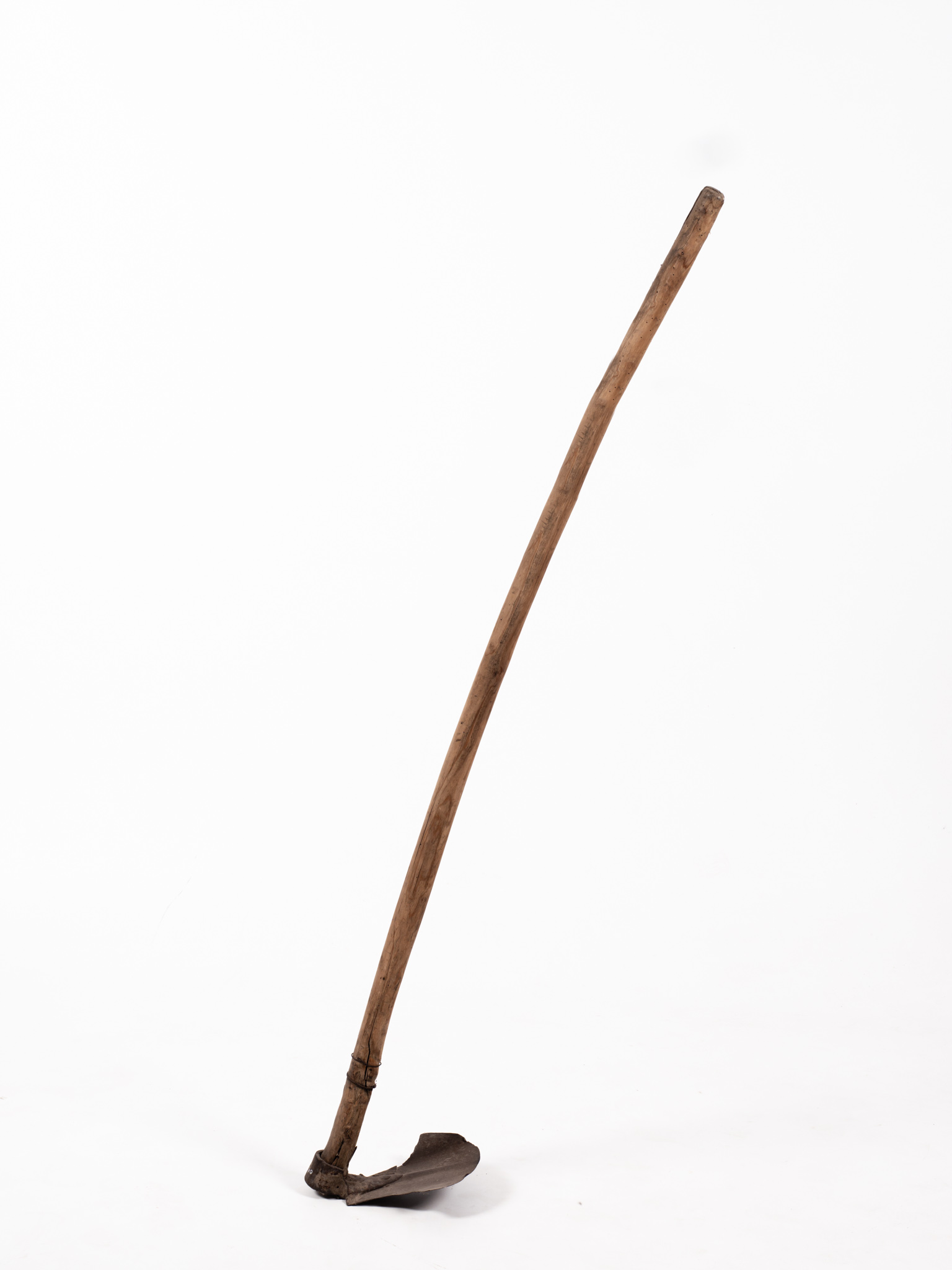 Nagykapából átalakított talajművelő eszköz fa nyéllel. A kapa tagot a felső részen mindkét oldalról homorú ívben kimetszették utólag, valmilyen speciális talajművelési céllal.