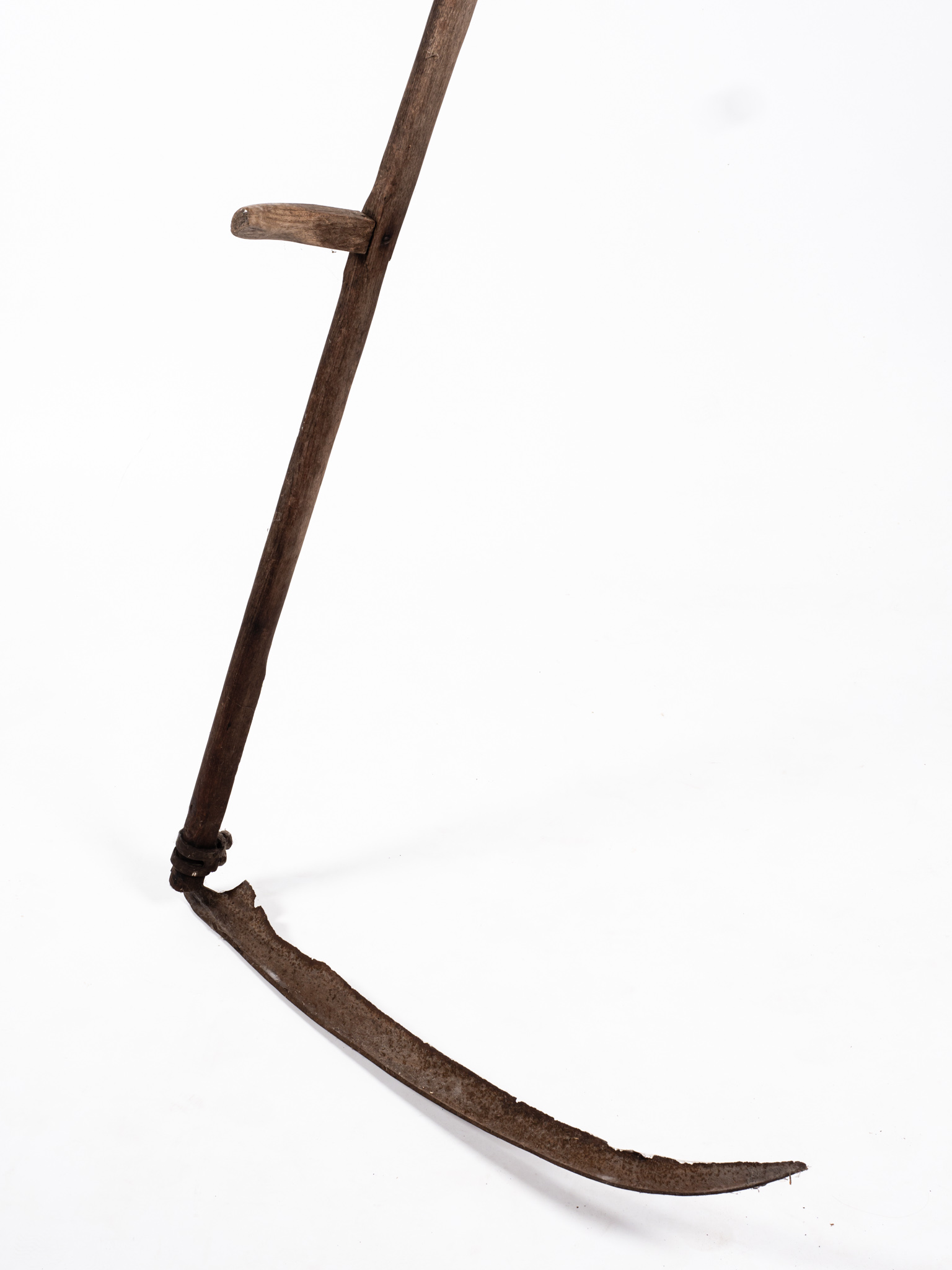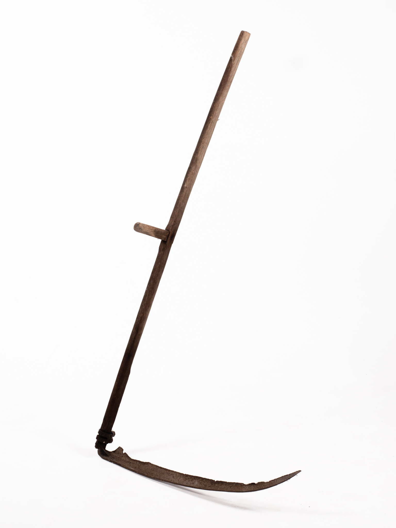 Aratásra és fűkaszálásra használt vágóeszköz, ún. hosszú nyelű kasza, 6 cm széles pengével, a penge és a nyak hegyesszöget zárnak be, ami egyenletes vágást biztosít. Aratáskor a kaszára vesszőből ún. takarót erősítettek, ami a gabonát rendre fektette, megkönnyítve a marokszedő munkáját. A kaszát általában helyi kovácsok készítették, de a vashámorokban előállított sarlókat kereskedésekben árulták. Híresek voltak a Szentgotthárdi Kaszagyár termékei. Lásd még: tokmány- leltári szám: 01.32.1-01.35.1, fenőkő- leltári szám:01.36.1/2/3.