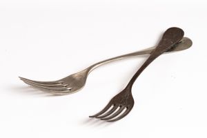 Alapkkából készült késvilla. Jelzés nélküli. A gyűjteményben alpakka kanalak KRUPP felirattal találhatók. Az Osztrák-Magyar Monarcia idején Berndorfban Alfréd Krupp által alapított evőeszközgyár terméke. A villa használata a polgári asztali etikettben a 20. sz. első felében jelent meg. Paraszti használatban szórványos.