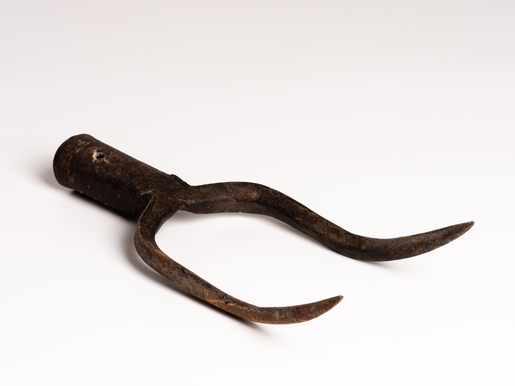 Hegyes kétágú vasszerszám, melyhez felső köpüs részén fanyelet erősítettek.