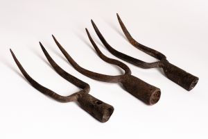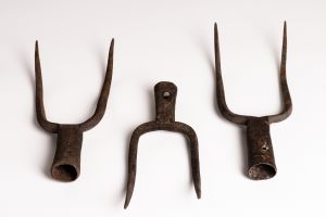 Hegyes kétágú vasszerszám, melyhez felső köpüs részén fanyelet erősítettek.Kévehányó villának is nevezik. Főleg szalmakévék adogatására használták, amikor azokat aratáskor asztagba vagy kazalba rakták. Vasvillákat készítettek helyi kovácsok is, de főleg gyári termékek voltak. A 19-20. sz. fordulójától a vasvillák fölváltották a fából készült villákat. Nyél nélküli.