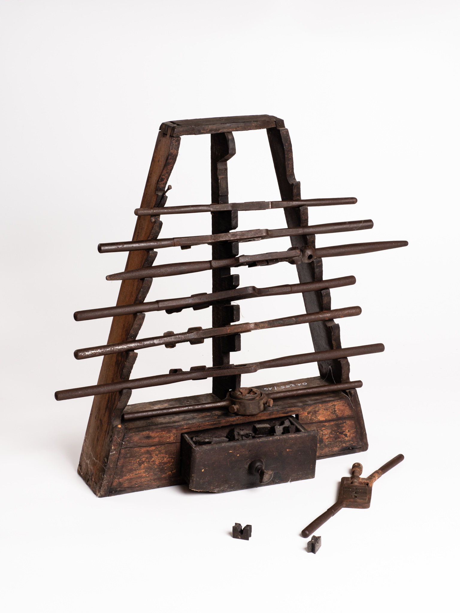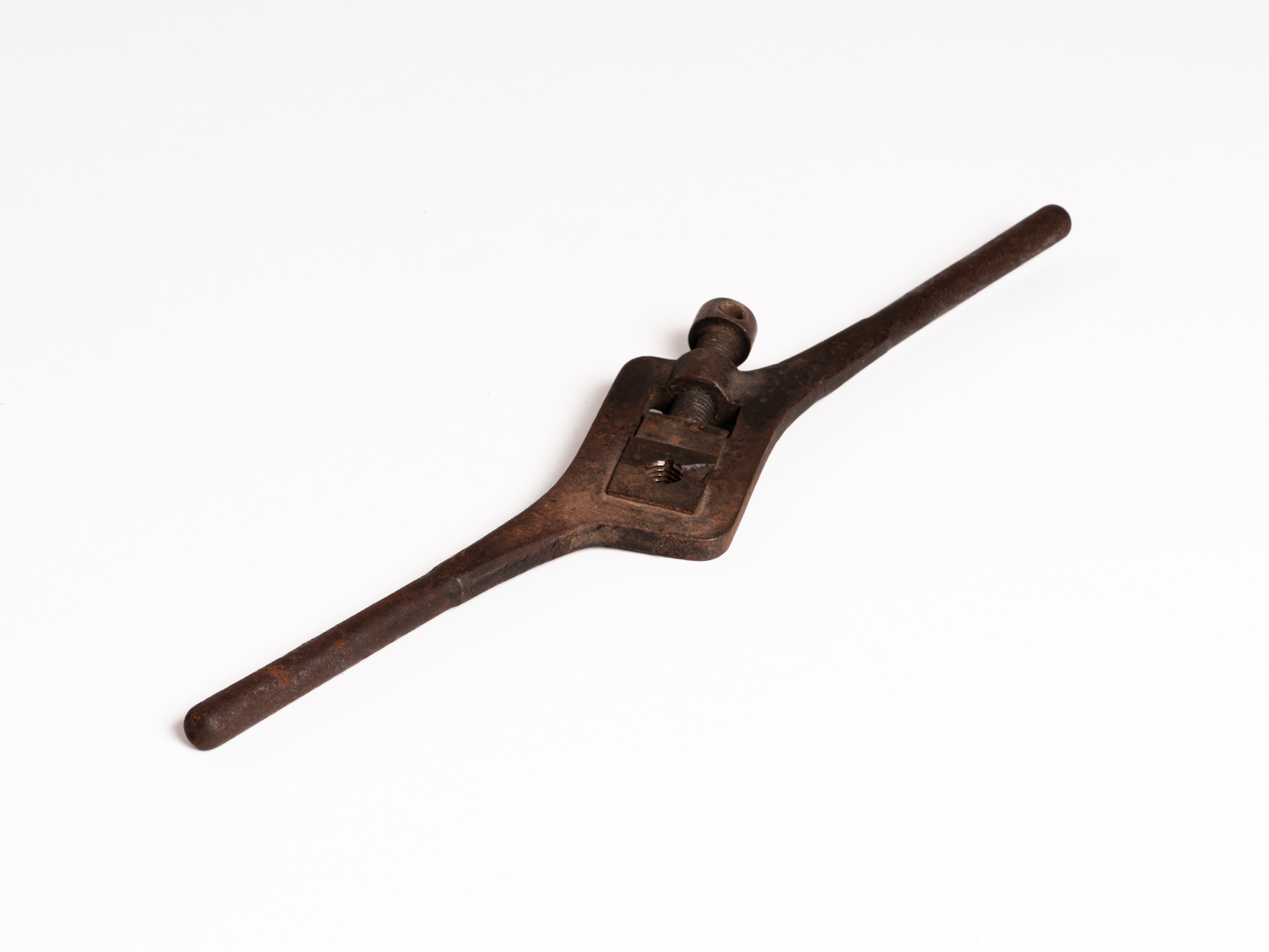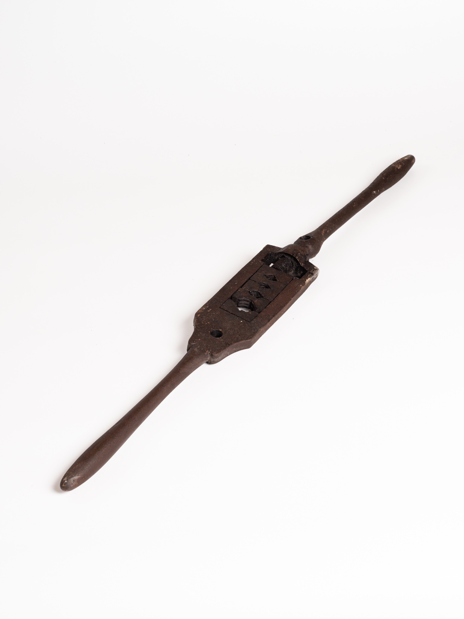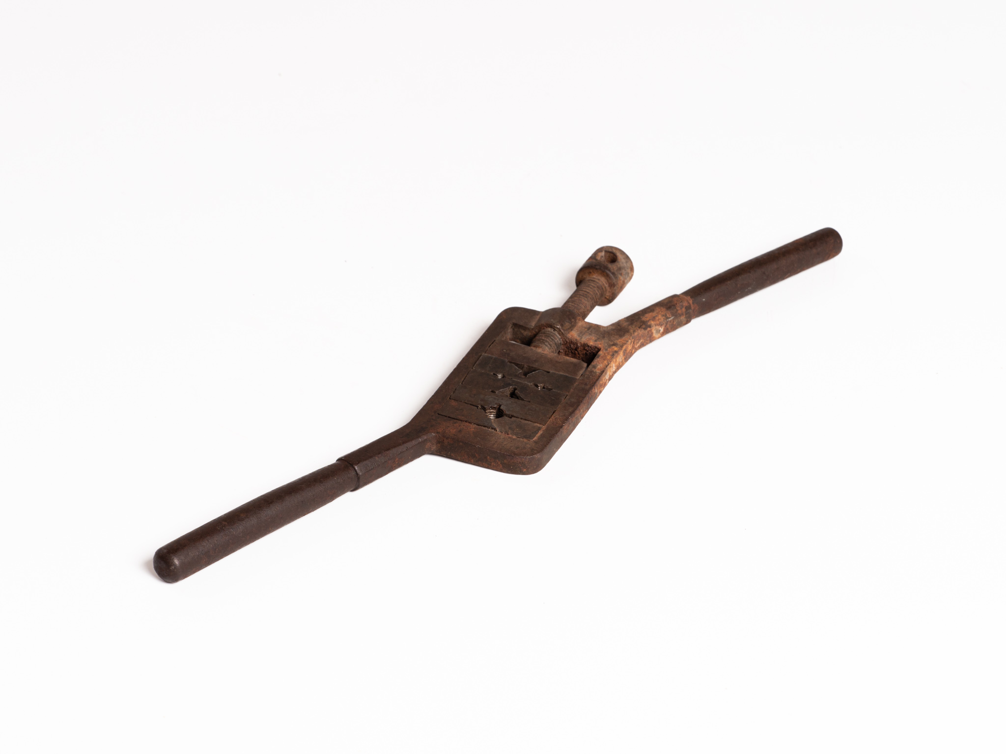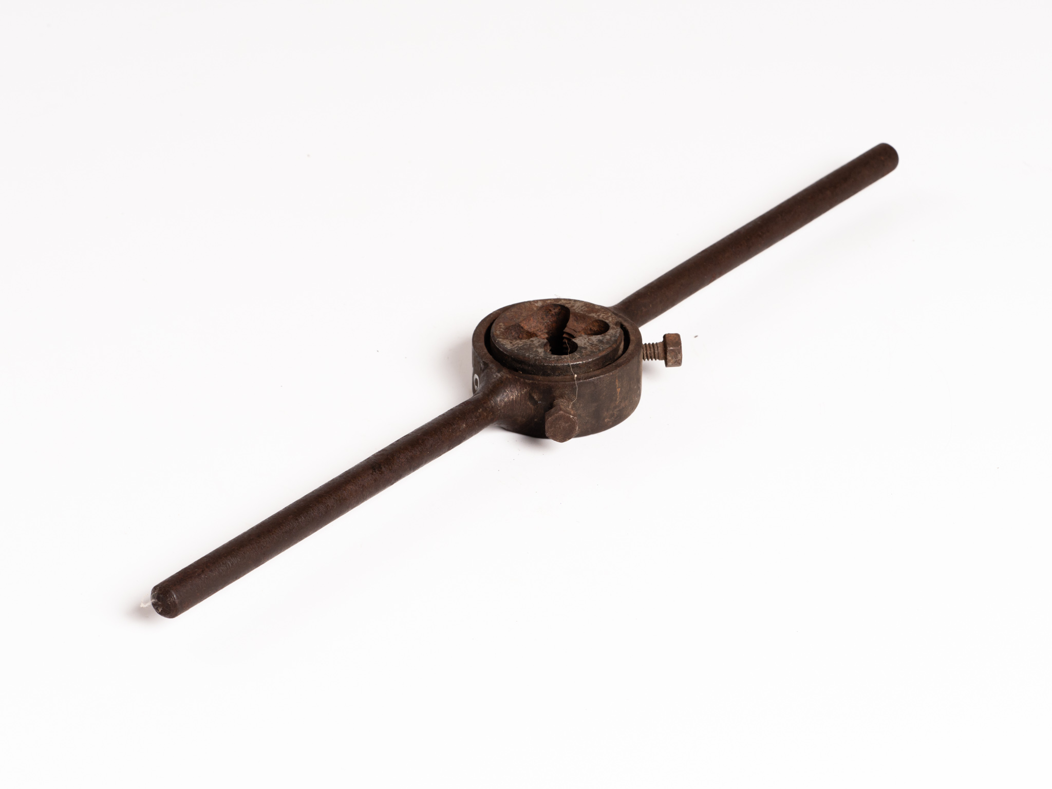 Vasból készült, gyári készítésű szerszám, amit vas alkatrészek készítésekor menetvágásra, menetmetszésre használt a kovács. A szerszámok háromszög alakú fából szögelt szerszámtartó állványon voltak elhelyezve, az állvány mérete: magasság: 53 cm, szélesség:12 cm, hosszúság: 44,5 cm. Pigniczki Ferenc kovács hagyatéka.