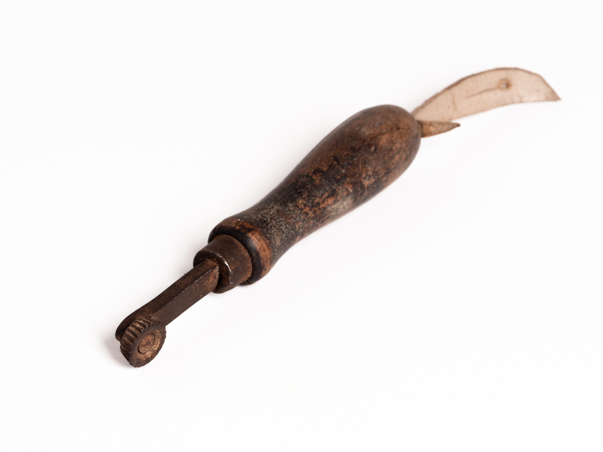 Esztergált fanyelű, fémfejű, gördülős szerszám, ami a bőrfelületen az öltés előjelzésére és viaszozásra is szolgált a cipőkészítés során. Kónya Mihály hagyatéka.