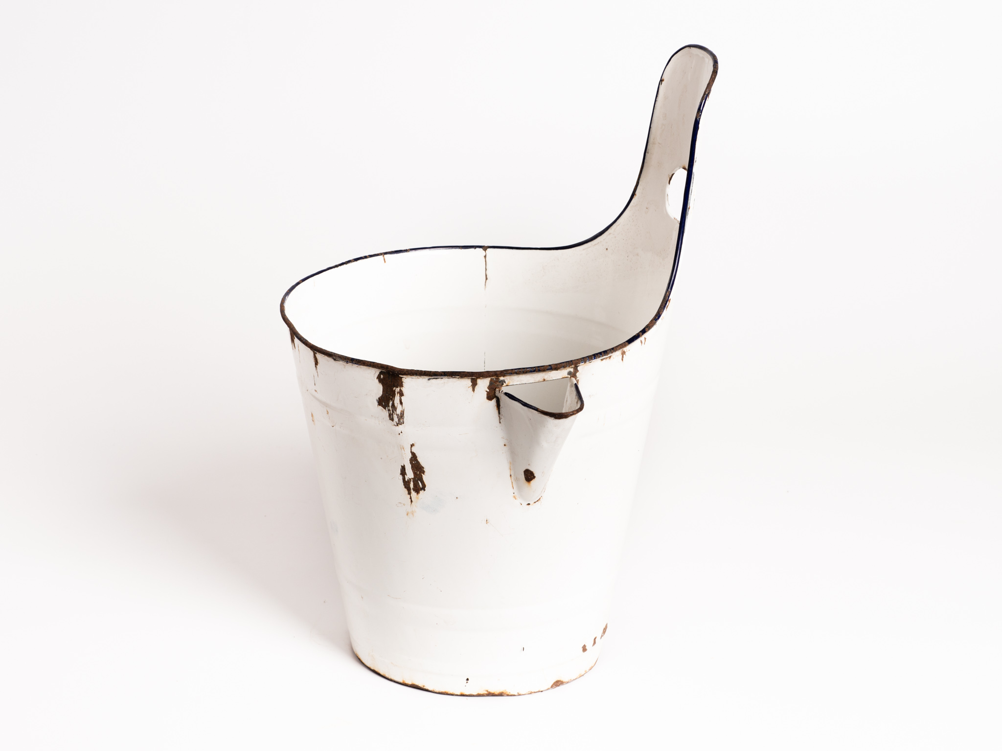 Felfelé szélesedő vödörszerű fejőedény, csőrös kiöntő résszel, támláján átlyukasztott fogantyúval, 7 literes. Védjegy: "Budafok" . Az 1904-ben alapított Budafoki Zománcgyár terméke, mely a két világháború között edényeket, háztartási eszközöket gyártott, majd a II. világháború után a Lampart Gyár vállalataként működött tovább.