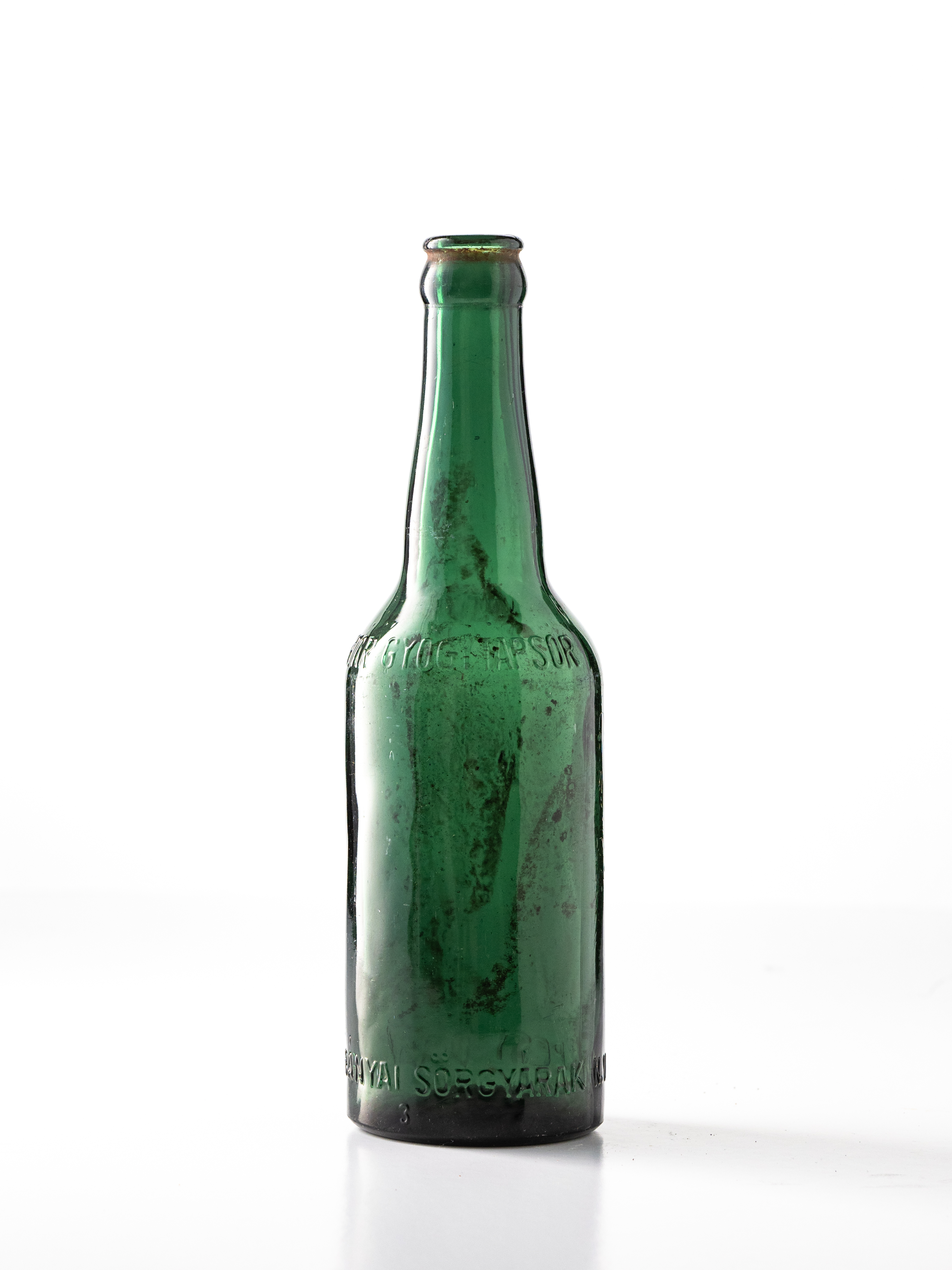 Vastag, sötétzöld üveg, 0,7 literes, felirattal: "DREHER HAGGENMACHER - RÉSZVÉNY SERFŐZDÉK BUDAPEST-KŐBÁNYA. 1933-tól működött a kartellbe tömörült három serfőzde ezen a néven, az államosítást követően a neve Kőbányai Sör- és Malátagyár lett. Az üvegek Balázs János, egykori kisteleki boltos házának padlásáról kerültek elő.