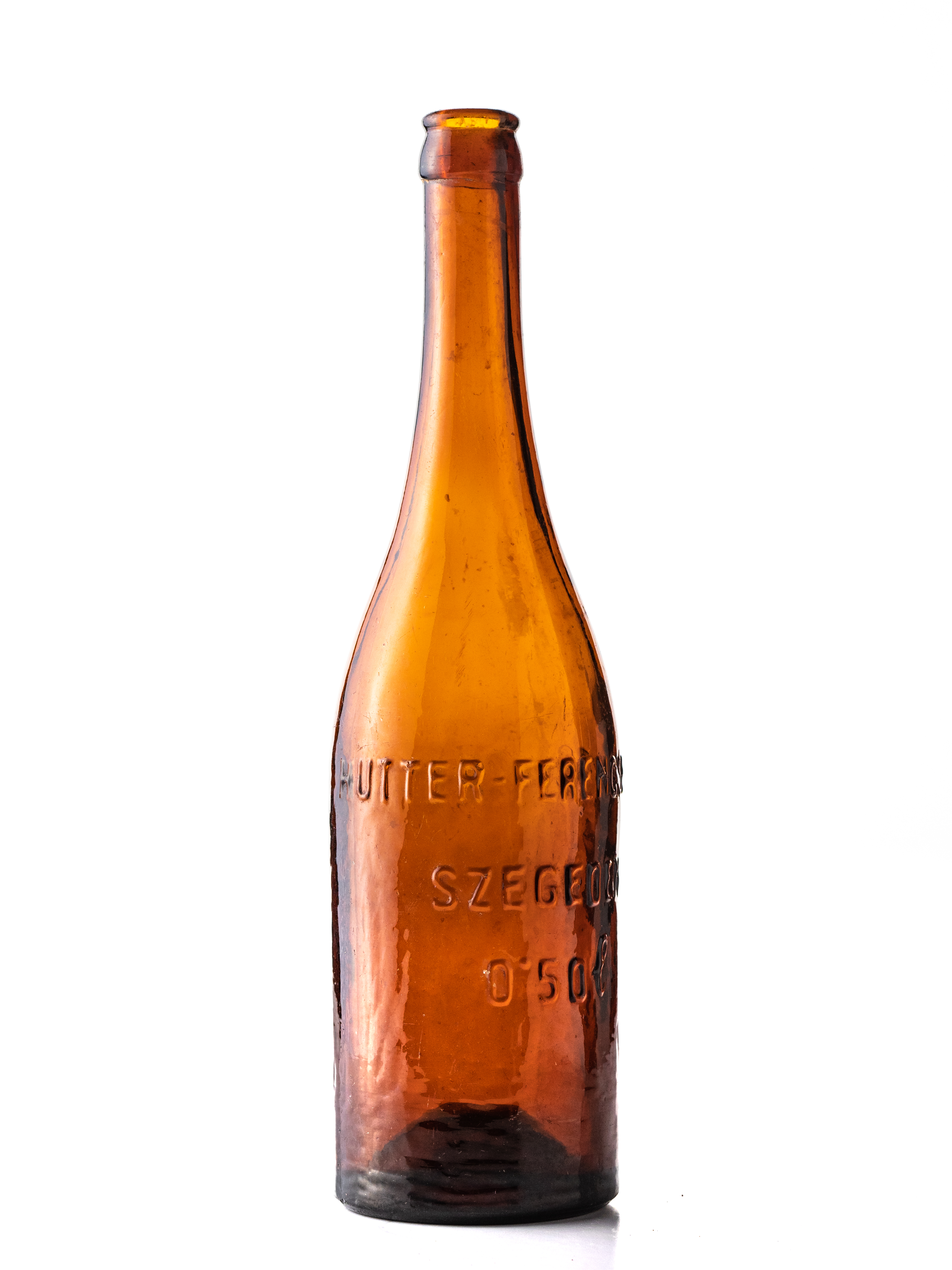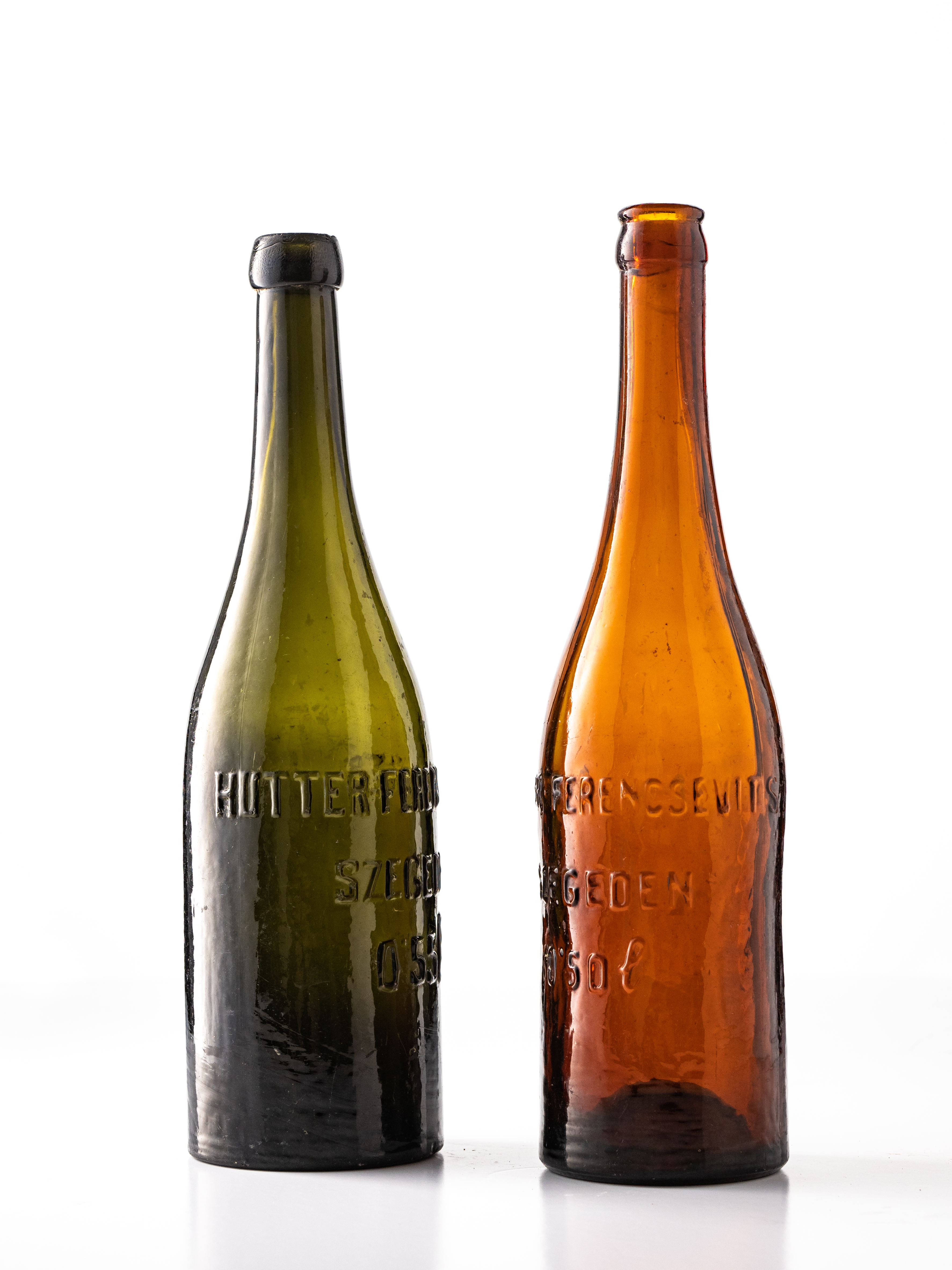 Sötétzöld és sötétbarna színű 0,5 literes, és 0,55 literes sörös- vagy borosüveg. Üvegen domború felirat: "HUTTER FERENCSEVITS SZEGEDEN". A palackok a Hutter József és Ferencsevits György által Szegeden, 1890-ben alapított sör- és bor nagykereskedésből származnak. A cég a kisteleki Balázs-féle szatócsbolt beszállítója is lehetett a két világháború között.