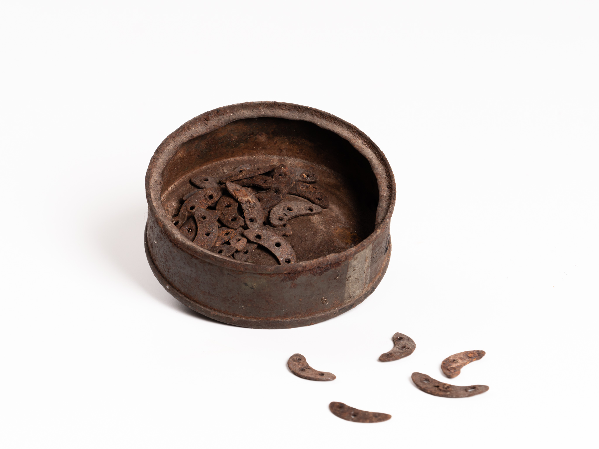 A cipő talpának orrészére felszegezhető, félhold alakú vaslemezke, ami a kopástól védte a lábbelit. Kónya Mihály hagyatéka.