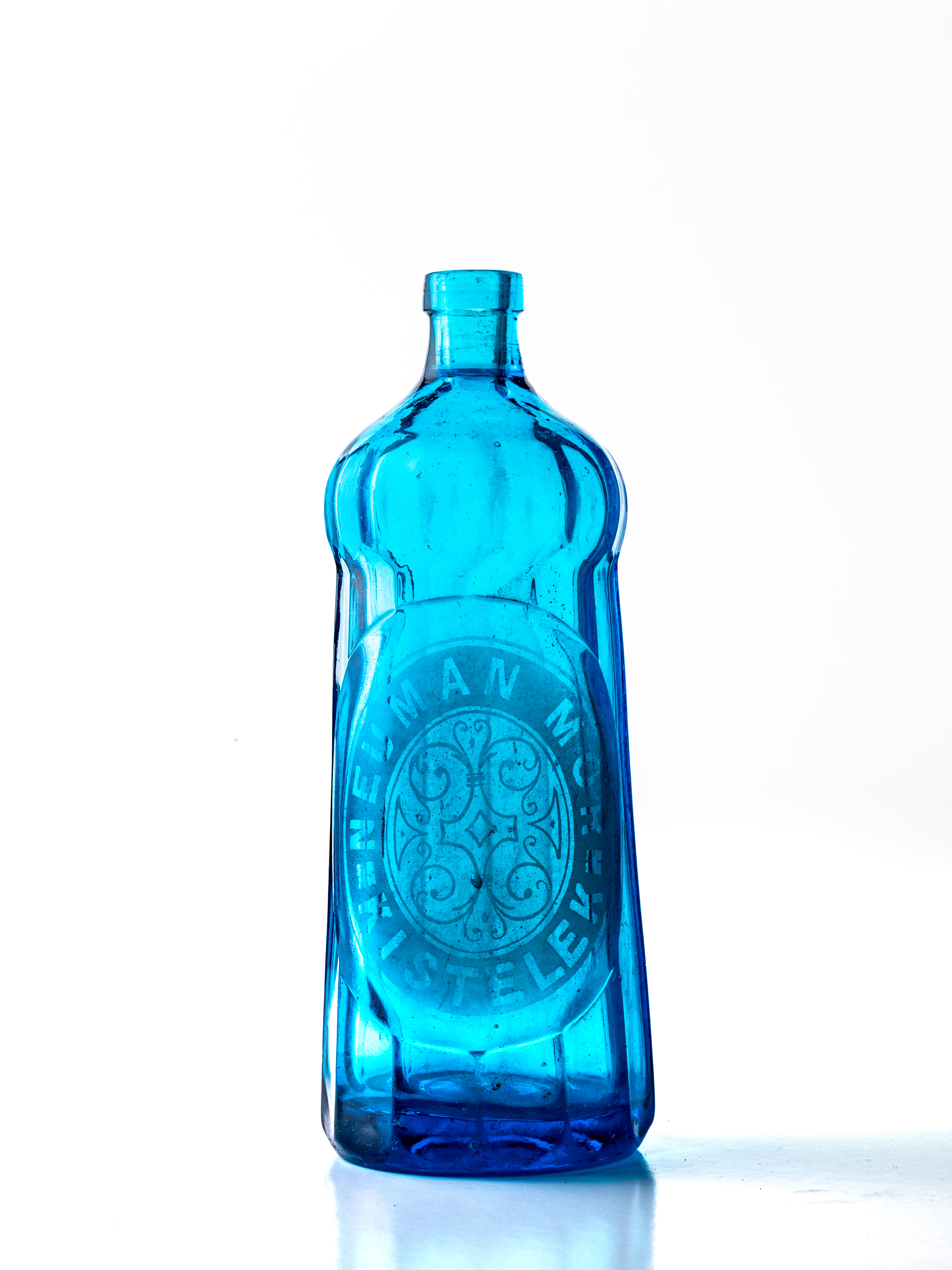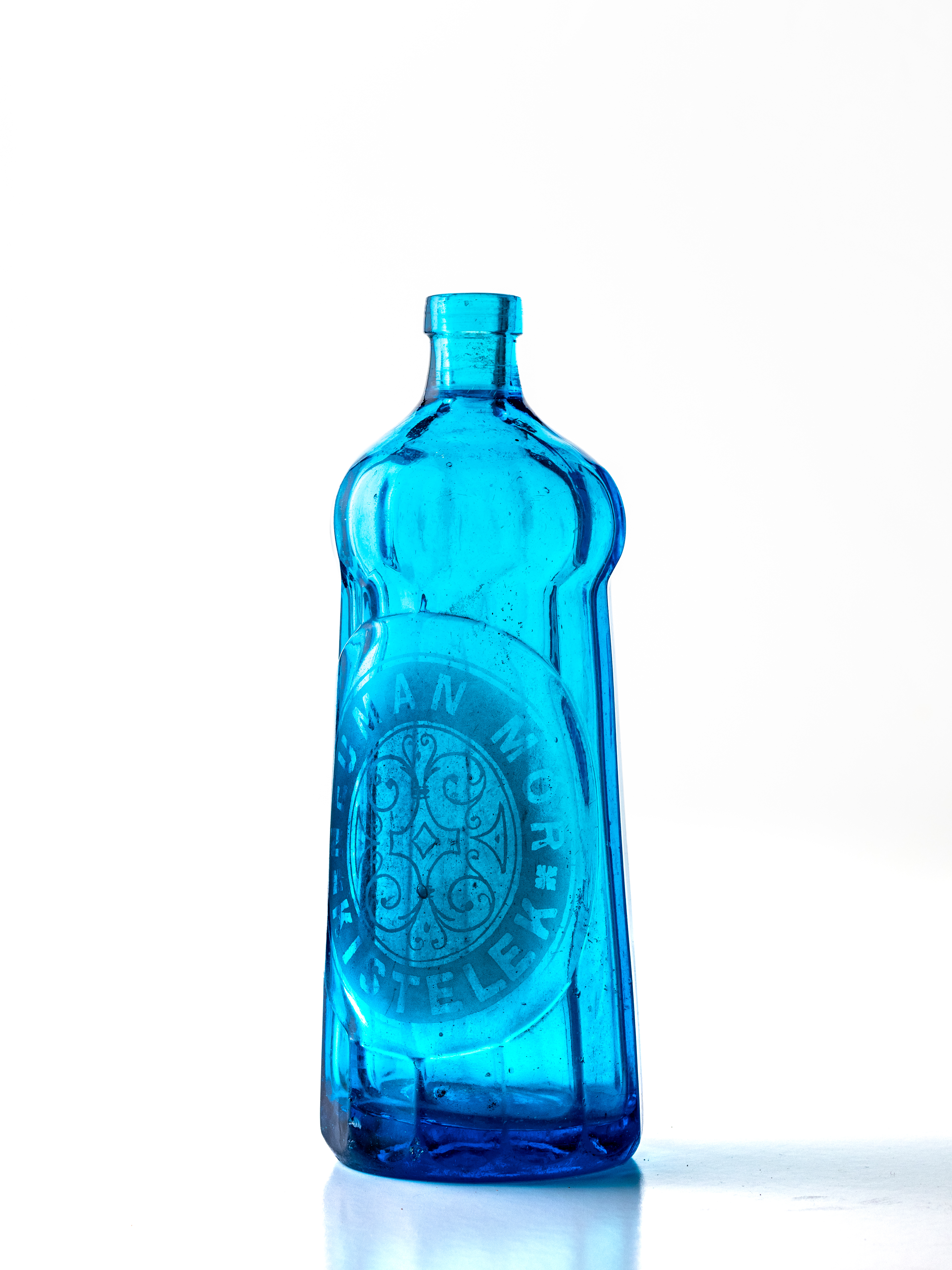 Vastag üvegből készült, kék színű szódásüveg, fej nélkül. Fúvott felirat: NEUMAN MÓR KISTELEK. A szikvíz gyártás a két világháború között lendült fel vidéken. A szikvízgyártás iparengedélyhez kötött mesterség volt, sok helyen a kocsmárosok létesítettek üzemet. Az előírás szerint a palackon fel kellett tüntetni a gyártó nevét és a gyártás helyét, a szifonfejen a gyártó nevét és védjegyét. Kisteleken a két világháború között több szikvízkészítő működött, pl.: Ausländer, Gyugel, Böhm Rudolf. Neuman Mórról kevés adat maradt fenn.