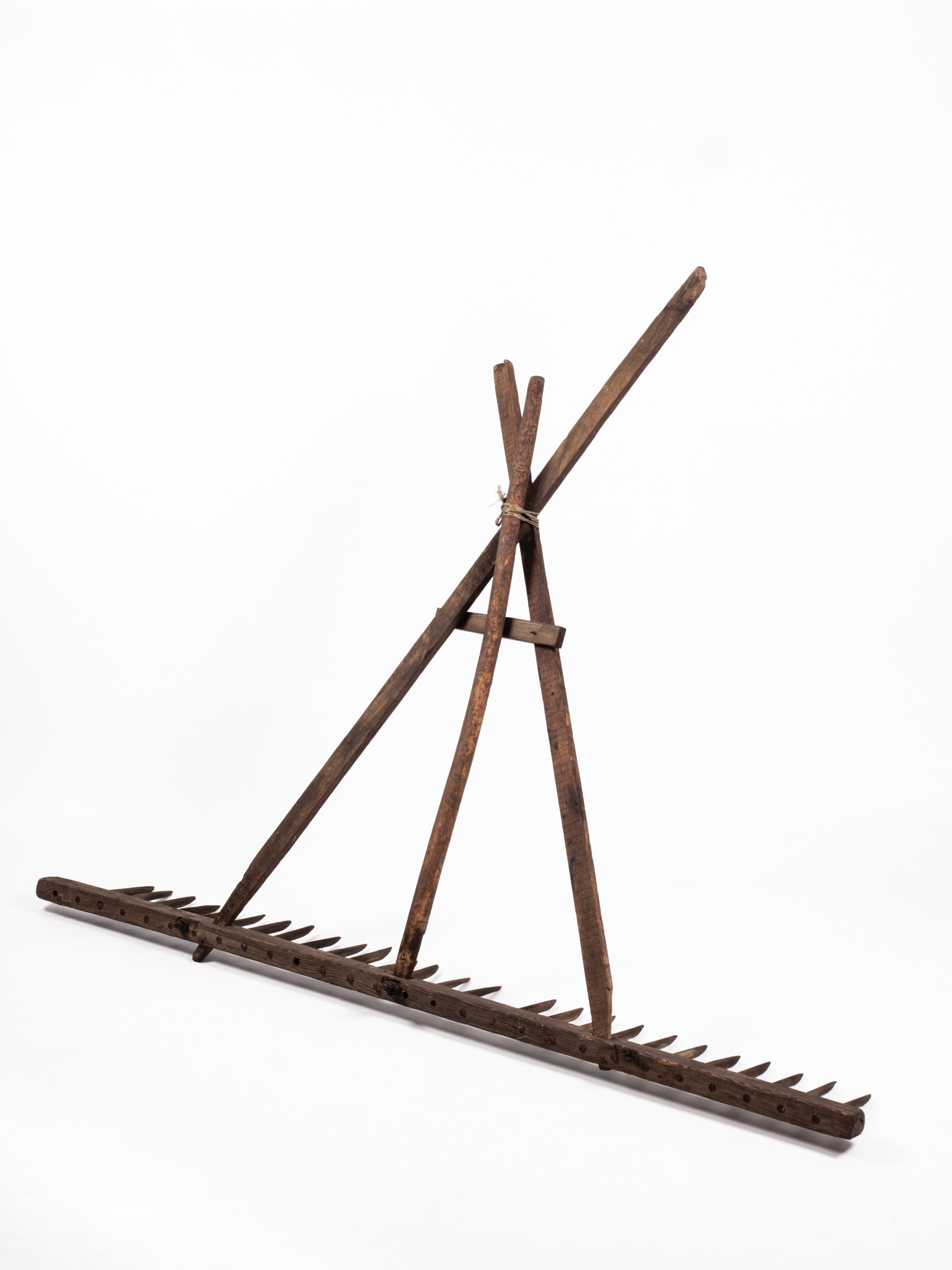 Fából készült, 28 fogú, egyágú nyéllel rendelkező, utólag két keresztirányba elhelyezett léccel megerősített nagygereblye, népi nevén "bőgő", amivel aratás után felgereblyézték a tarlót, hogy a marokverők után elmaradt kalászokat összeszedjék.