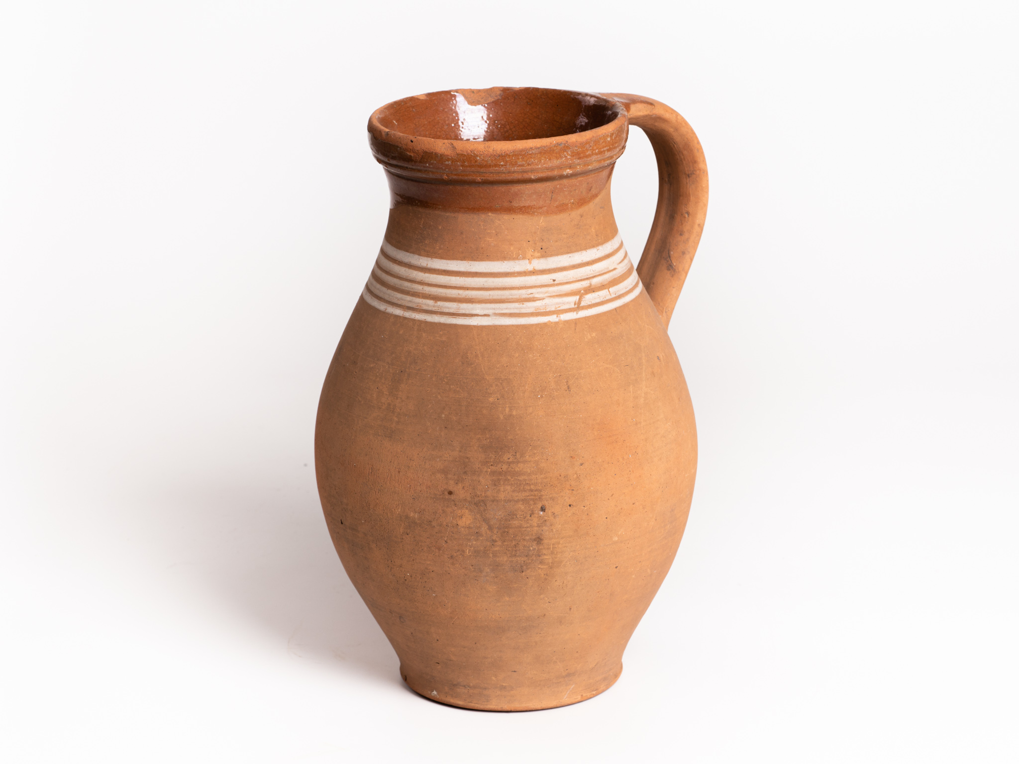 Agyagból készült, kívül mázatlan, belül mázas nyúlánk formájú, egy füles tejtartó edény, nyakán fehér földfestékkel készült csíkozott díszítéssel. A köcsögöt használat után a köcsögfán szárították. A zománcozott bádog edények elterjedése előtt a tejtermelő paraszti háztartás fontos kelléke volt.