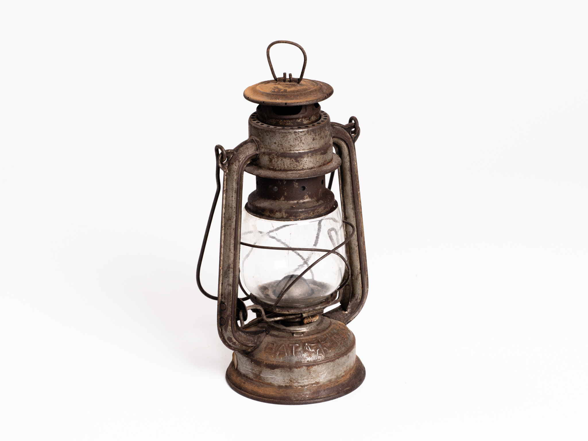 Fémből készült, petróleum üzemű füles viharlámpa. Német gyártmányú. Védjegy:" BAT No 158 Made in Germany" felirattal, denevér emblémával. Viharlámpát a paraszti háztartásban kültéren, istállóban, lovaskocsi kivilágítására használtak.